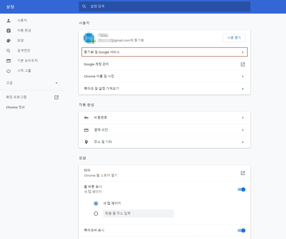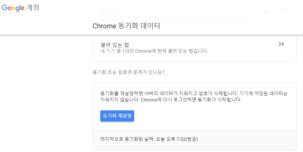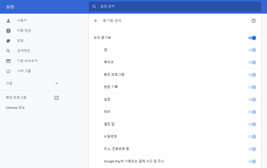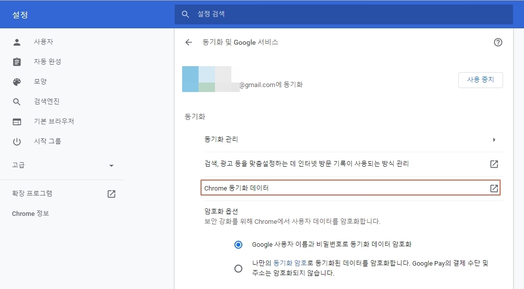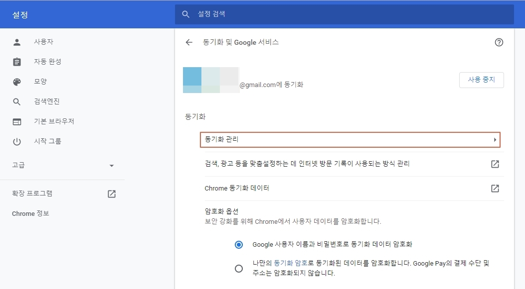 크롬 동기화 관리하기