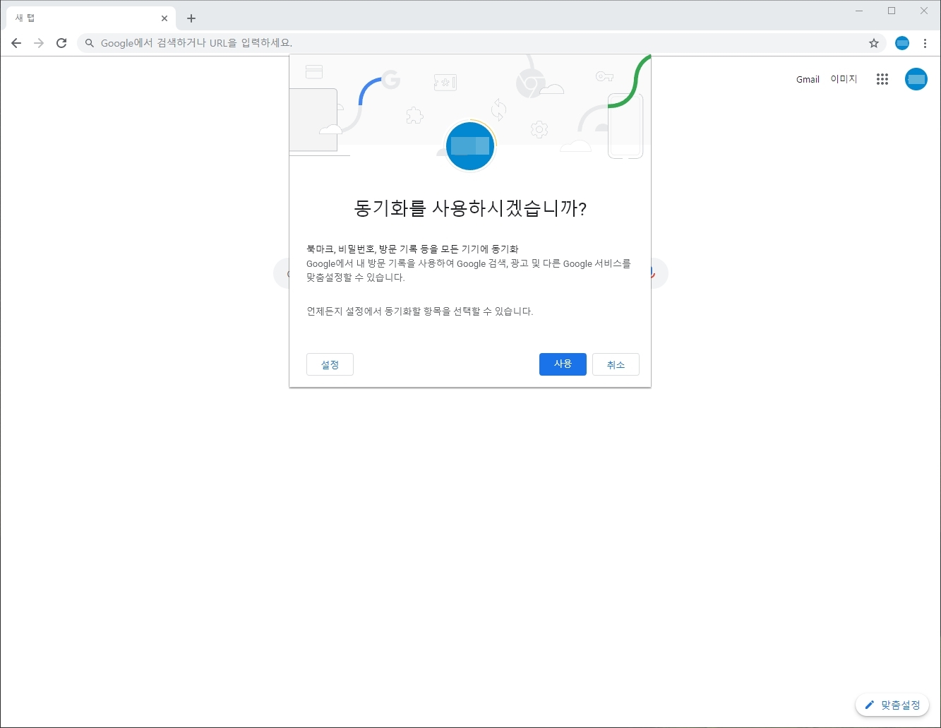 구글 아이디 로그인을 통한 크롬 동기화 설정