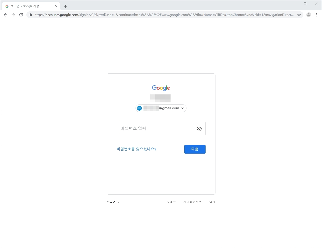 1. 크롬을 설치하면 다음과 같이 구글 계정 로그인 화면이 나타나게 됩니다. 이메일 또는 휴대전화 번호를 입력하고 다음을 눌러 비밀번호까지 정확히 입력하면 로그인이 완료됩니다.