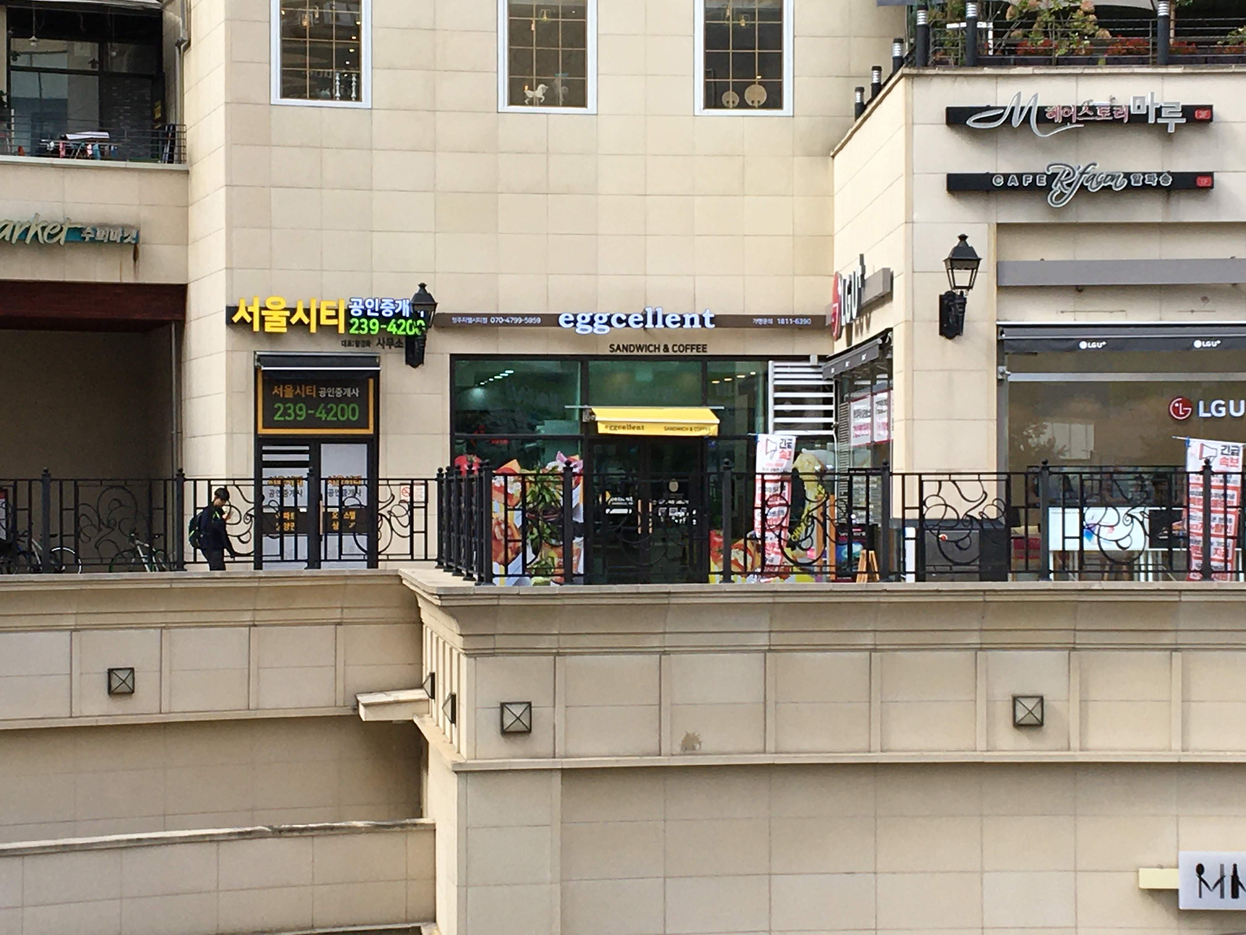 에그셀런트 청주지웰시티점은 지웰시티몰 1층 GS슈퍼마켓쪽 LG U+ 매장 옆에 위치하고 있습니다. 멀리서 보면 매장 아랫 부분이 난간대에 부분적으로 가려져 잘 보이지 않지만 찾아가는데 큰 어려움은 없습니다.
