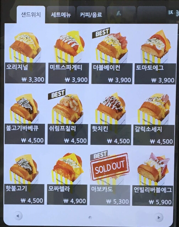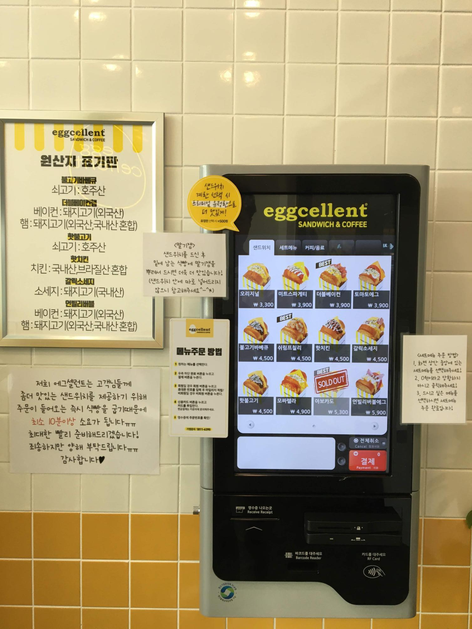 계산대 옆에 주문 전용 기계가 놓여있어서 편리하게 주문이 가능합니다. 물론 필요에 따라 카운터에서도 주문을 받아주시기 때문에 기계 사용이 익숙하지 않거나 귀찮은 분들은 그냥 주문하셔도 됩니다.
