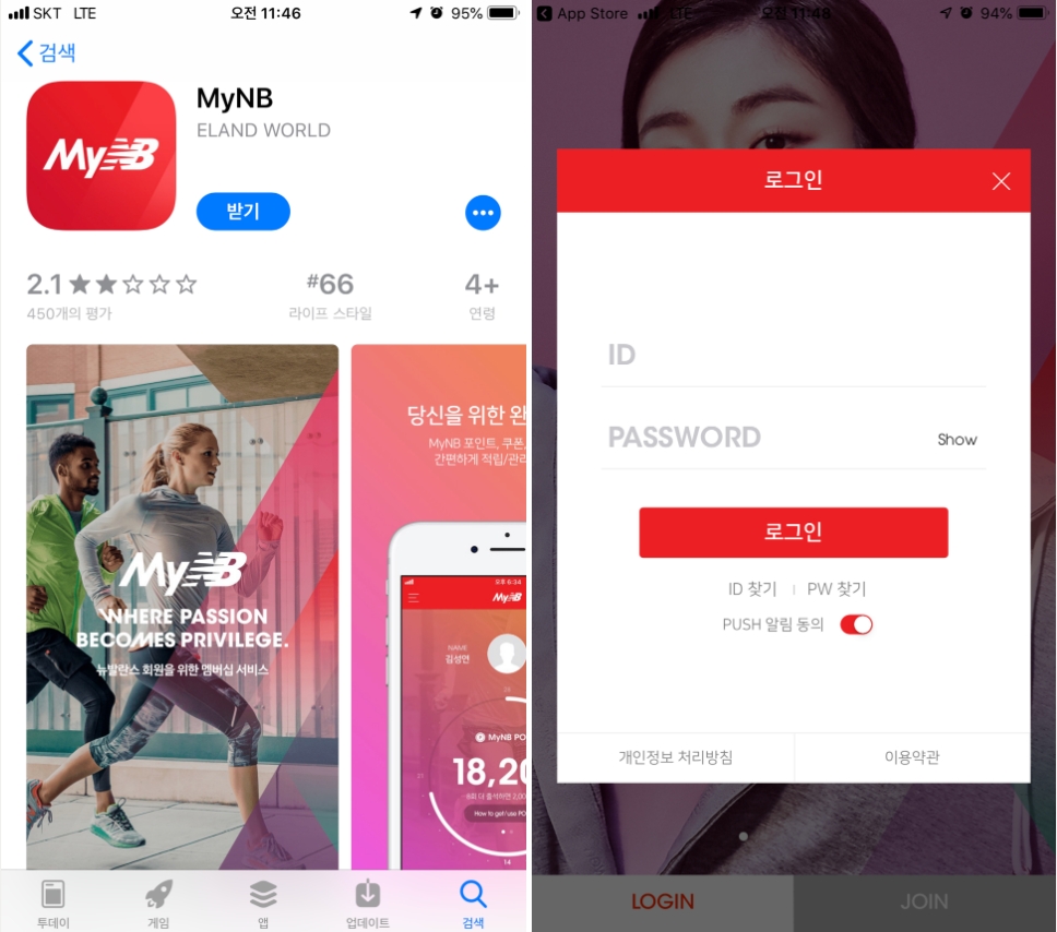 1. 애플 앱스토어 또는 구글 플레이스토어에서 MyNB 앱을 다운로드합니다. 설치가 완료되면 회원 가입 또는 이미 회원인 경우 바로 로그인합니다.