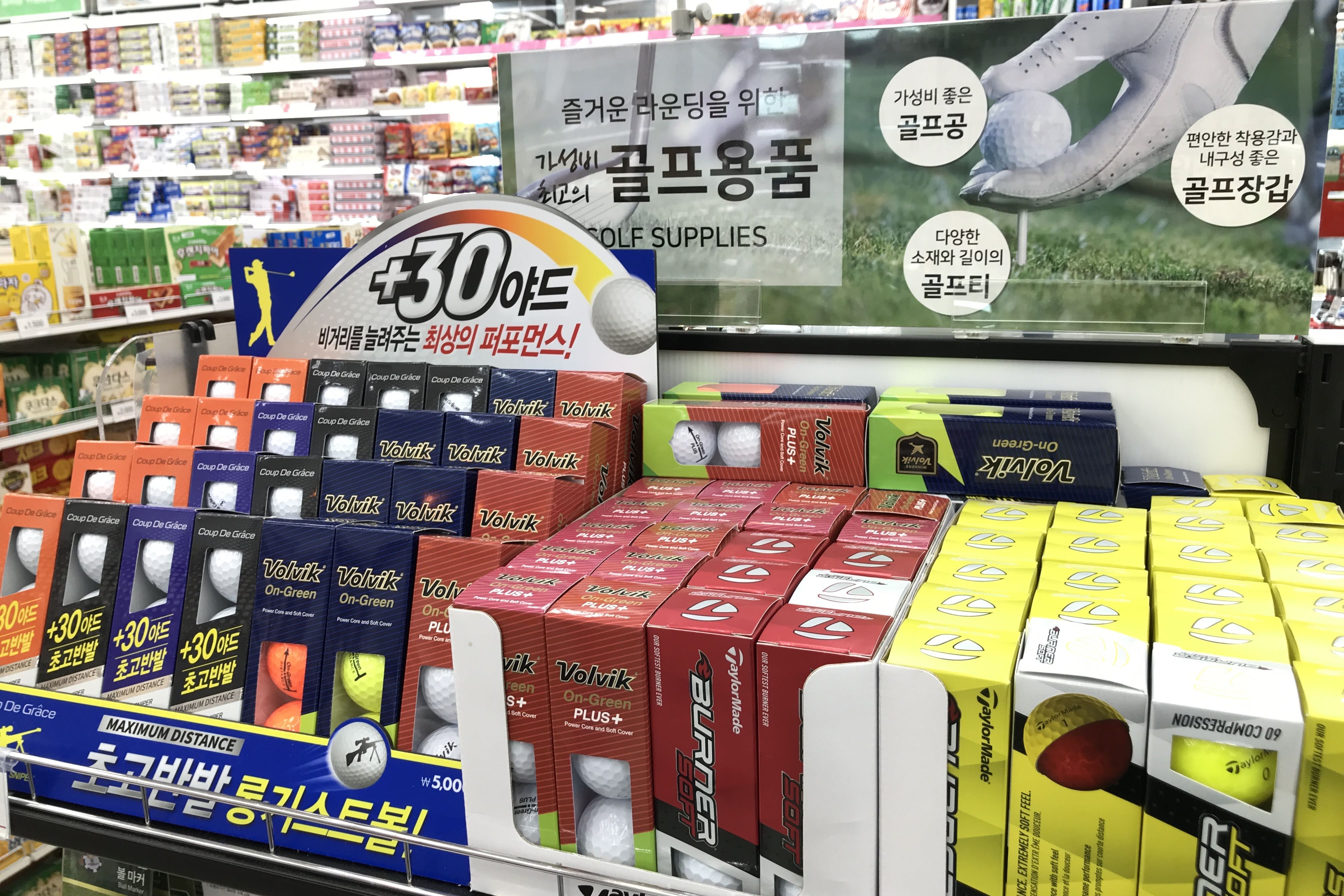 작은 다이소 매장에서는 보기 어려운 골프용품도 판매 중입니다. 다양한 골프공들이 판매 중인데 평소 골프를 즐겨하지 않아서 어떤게 좋은 용품인지는 잘 모르겠습니다.