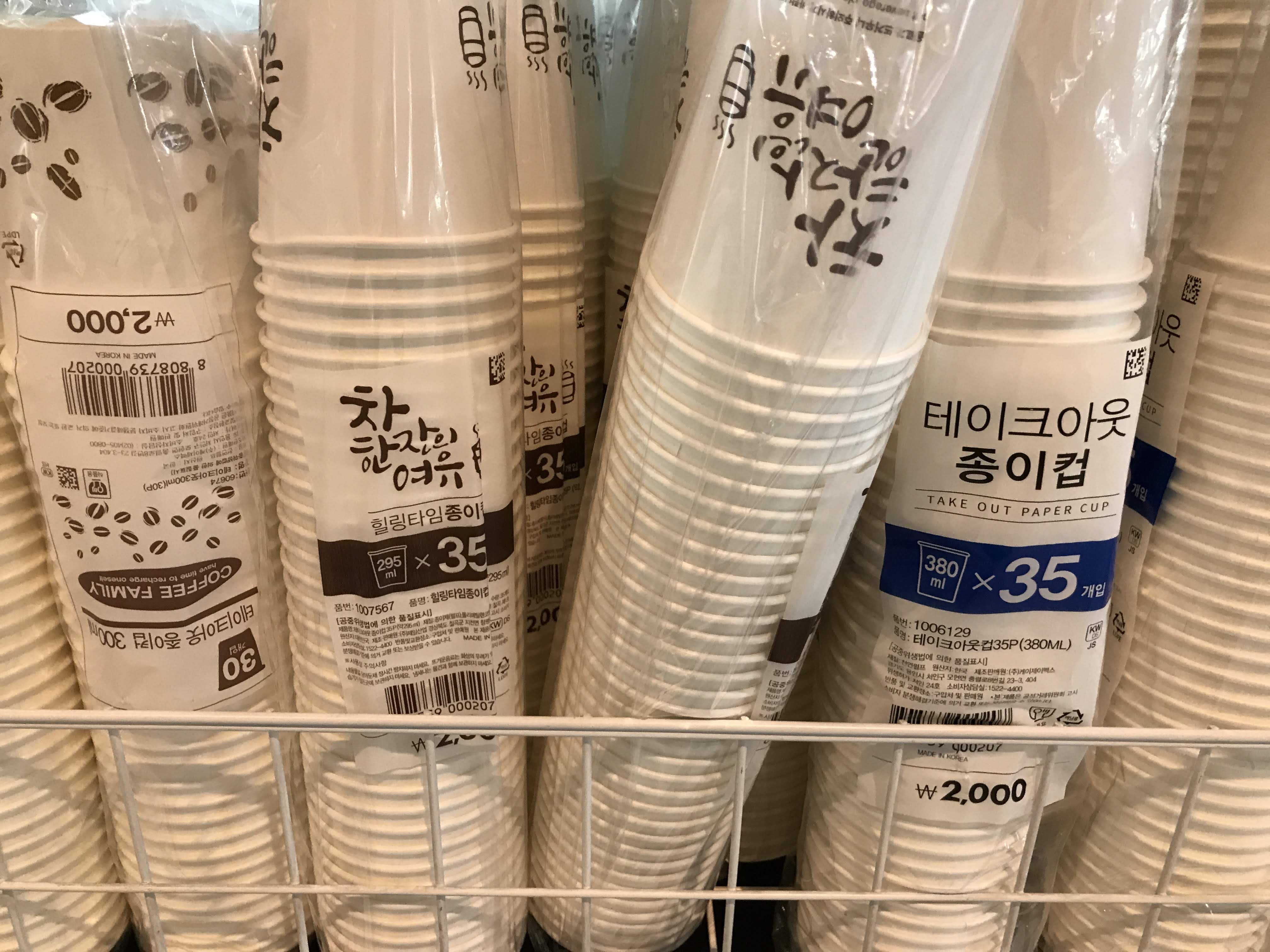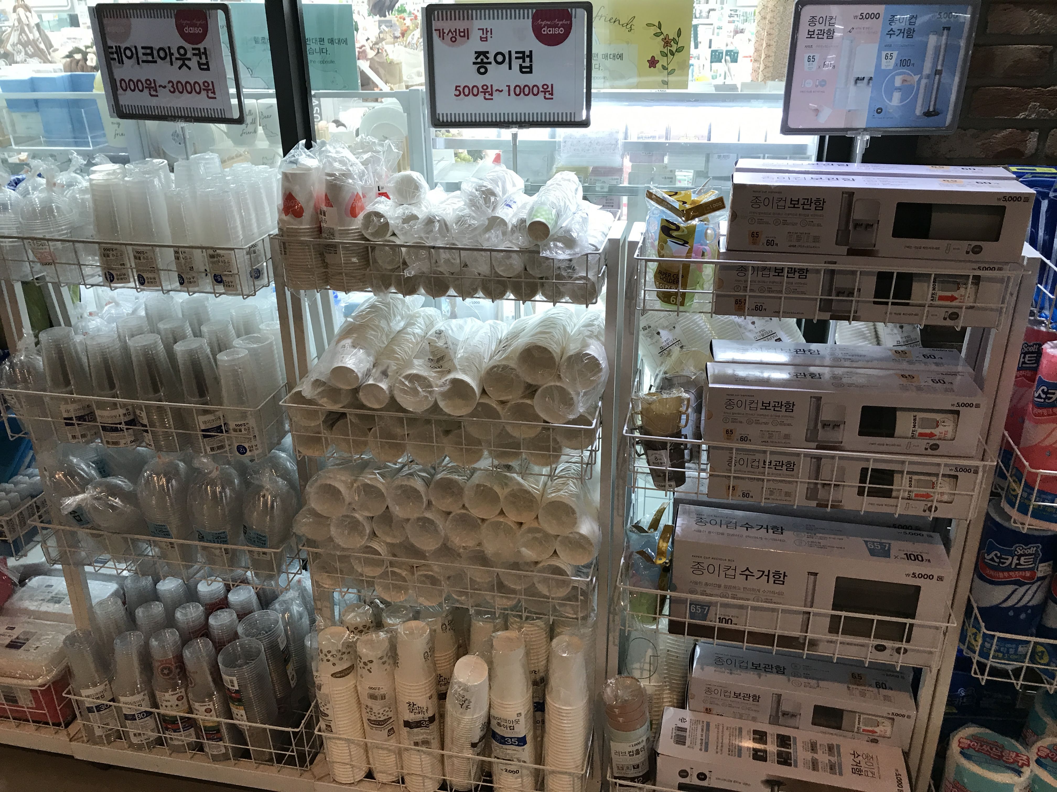 제가 찾던 종이컵 및 테이크아웃컵 코너도 바로 이곳에 있었습니다. (처음에는 매장 내부에 있는 줄 알고 매장 한 바퀴를 돌았습니다.) 종이컵 보관함 및 수거함 등 종이컵 관련 제품도 같이 판매하고 있어서 원스톱(?) 쇼핑이 가능한 것도 장점.