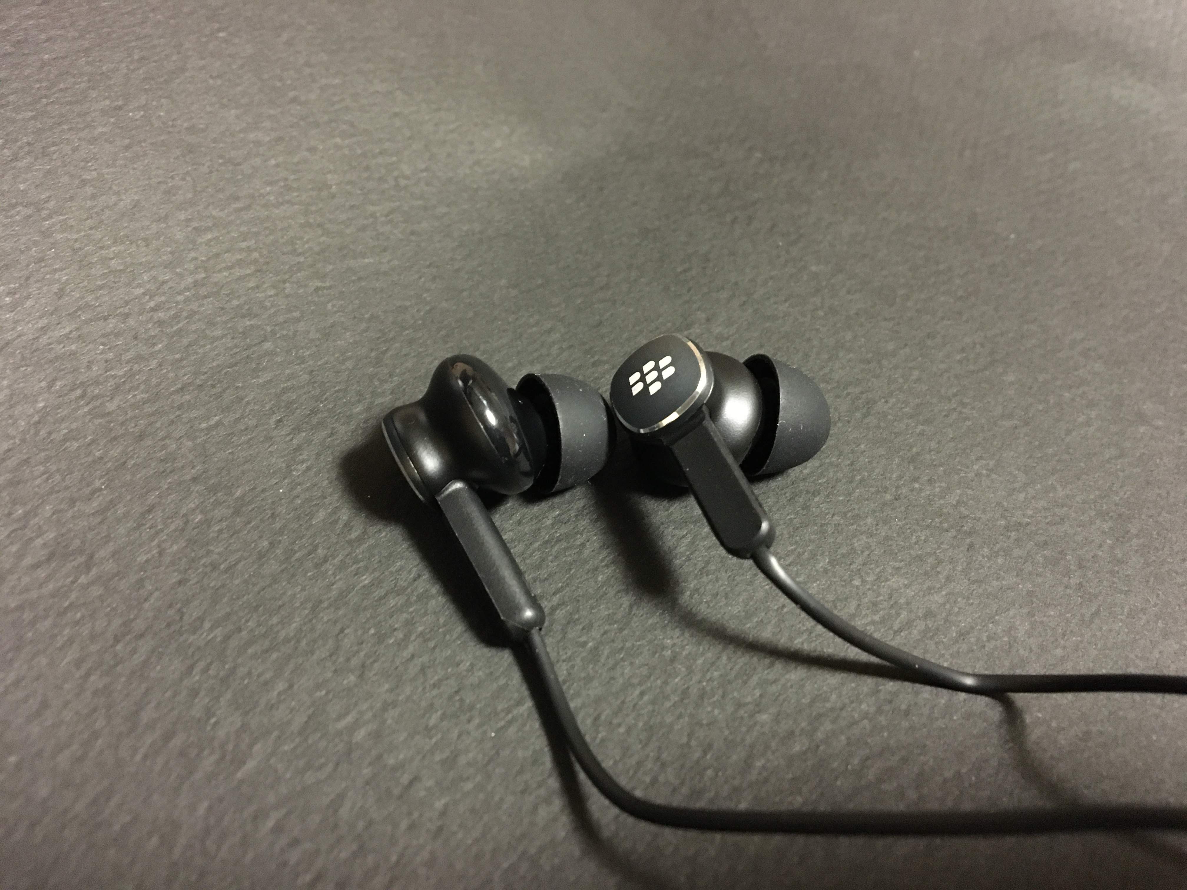 인이어 이어폰은 블랙베리 로고가 양쪽 유닛 및 마이크에 들어가 있습니다. 음질은 또렷하나 음색에 큰 특징이 있는 건 아닙니다. 유닛의 크기가 작지 않지만 착용감은 어지간한 인이어 이어폰보다 더 좋은 편입니다.