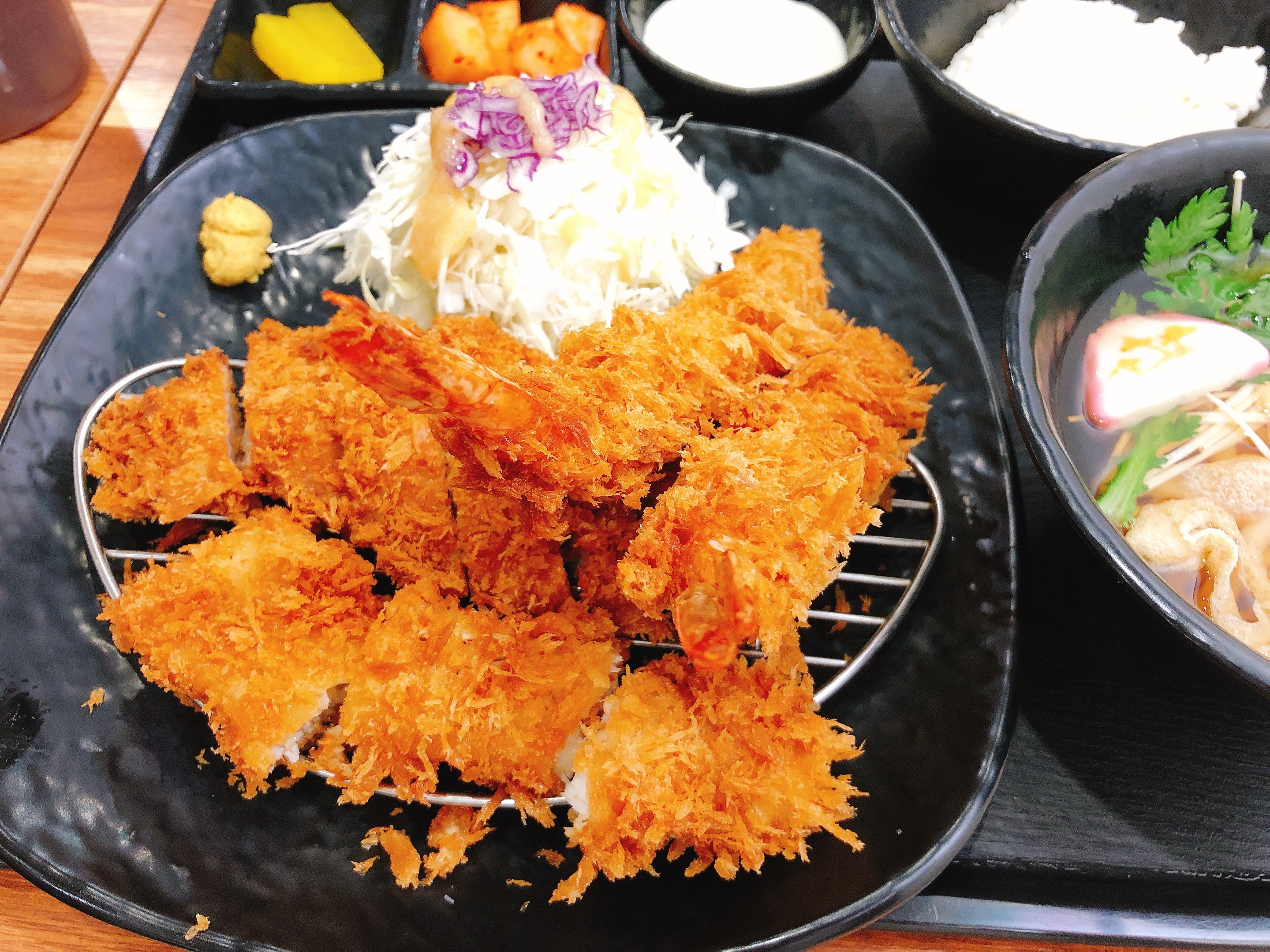 안심, 생선, 새우가츠가 함께 제공되는데요. 가격 대비 양이 정말 푸짐합니다. 다른 가게와는 달리 새우도 2마리가 나와서 정말 부족함 없는 식사를 할 수 있었습니다. 함께 제공되는 우동은 일반적인 가게에서 먹는 그 맛이었습니다. 국물 맛은 평범하지만 면의 삶은 정도가 적당하여 맛있었습니다.