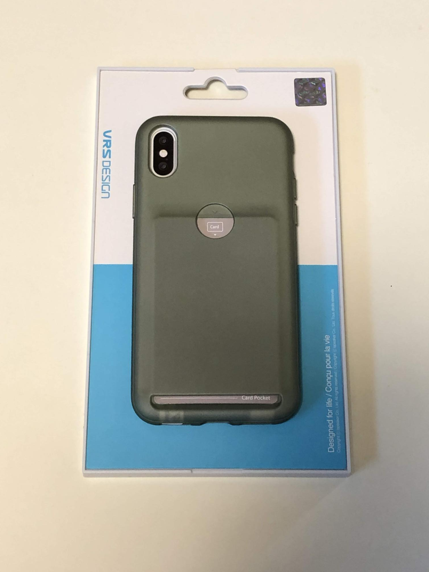 투명 플라스틱 커버를 제거하면 바로 제품과 마주하게 됩니다. 베루스 담다핏 아이폰X/XS 전용은 라이트 페블, 핑크 샌드, 유칼립투스, 블랙의 네 가지 색상으로 출시되었으며 현재 일부 색상은 품절 상태입니다. 제가 선택한 색상은 유칼립투스로써, 은은한 녹색이 편안한 느낌을 줍니다. 얼핏 보면 아이폰11 프로 모델의 미드나이트 그린과 비슷한 색상입니다. 케이스를 씌우고 카드를 넣으면 바로 아이폰의 후면과 맞닿는 구조이기 때문에 케이스 밑에 후면 보호필름이 1장 들어있습니다.