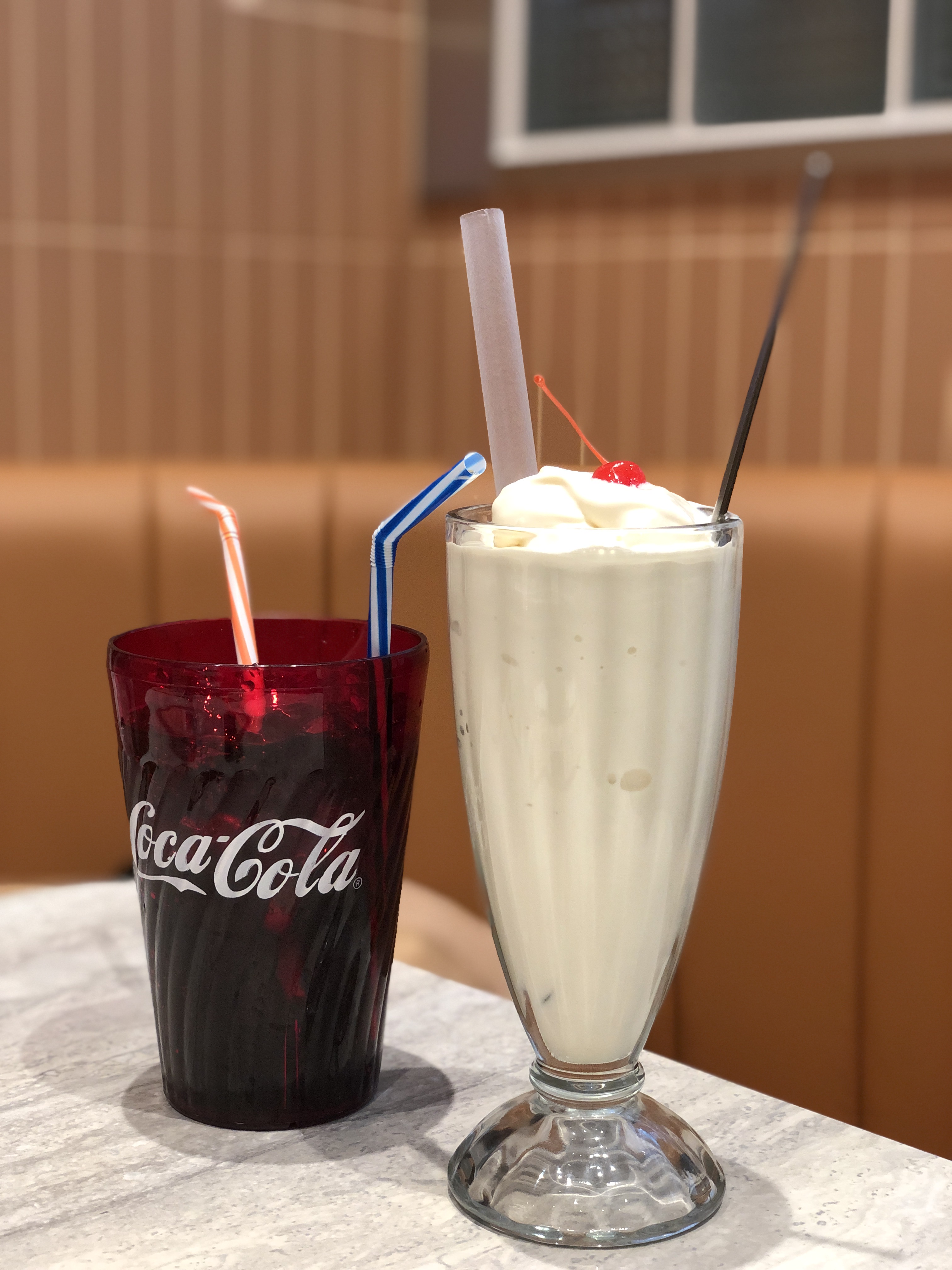 저희 일행은 햄버거 두 개와 사이드 메뉴 하나, 그리고 콜라와 밀크쉐이크를 주문했습니다. 먼저 음료가 나오는데요. 코카콜라 컵이 너무 이뻐서 한 컷 담아보았습니다. 함께 나온 밀크쉐이크도 밀쉐하면 생각나는 햄버거집, 쉐이크쉑 버거의 그것만큼 맛있었습니다.