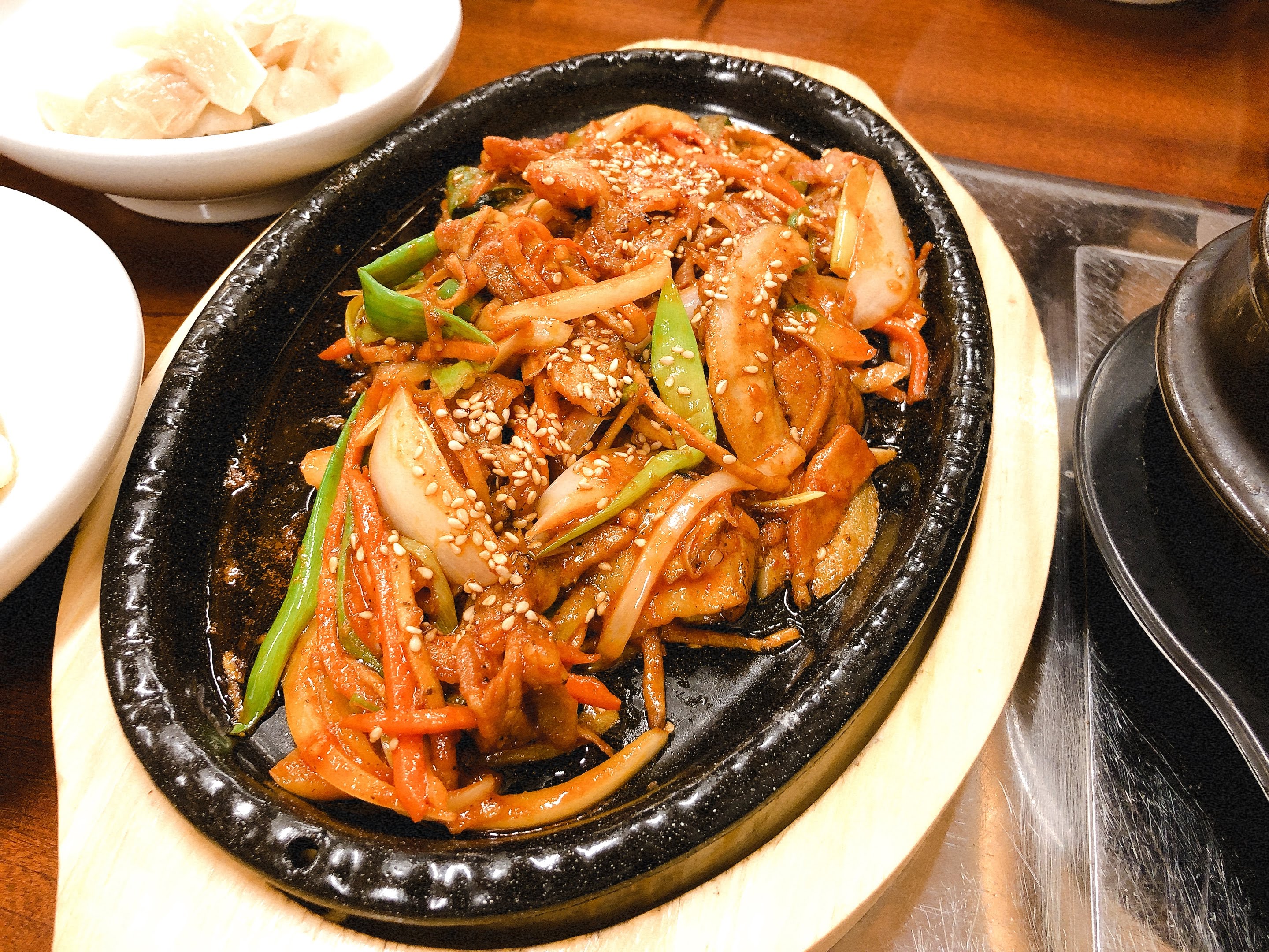 세트 메뉴의 중심, 우엉제육도 제 입맛에 딱이었습니다. 각종 야채도 많이 들어있지만 우엉이 눈에 띠게 많은 정도는 아닙니다. 우엉제육 쌈밥이라는 이름에 걸맞게 쌈채소에 밥과 함께 쌈짱 찍어 싸 먹으면 그 맛이 일품입니다. 다만 양이 생각보다는 조금 적은 느낌이라 아쉬웠습니다.