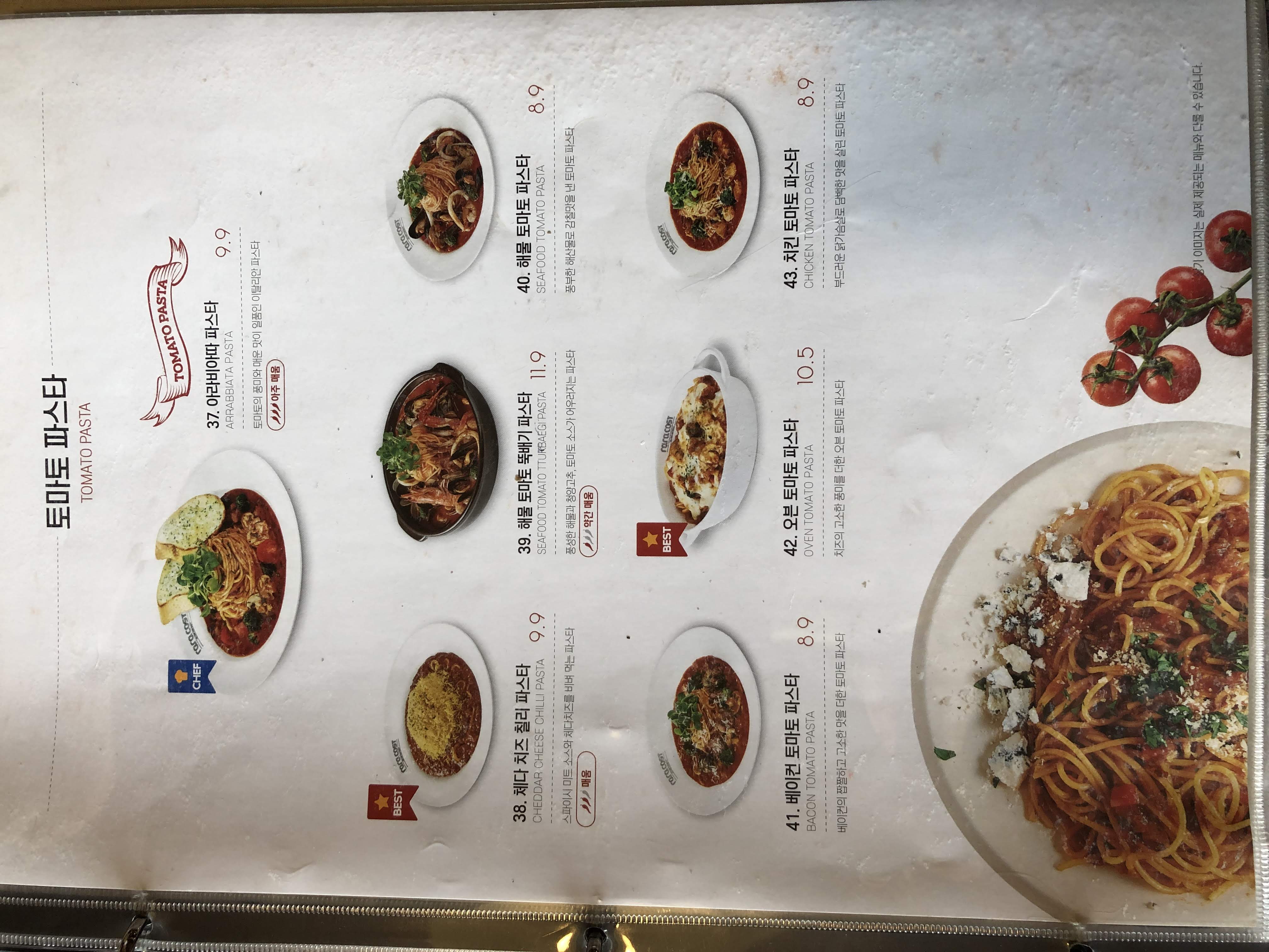 개인적으로 좋아하는 토마토 파스타 메뉴입니다. 앞서 봉골레&오일 파스타 메뉴에는 특색 있는 메뉴가 많았지만 토마토 파스타 메뉴에서는 이런 실험적인 메뉴는 찾아보기 어렵고 기본에 충실한 모습입니다.