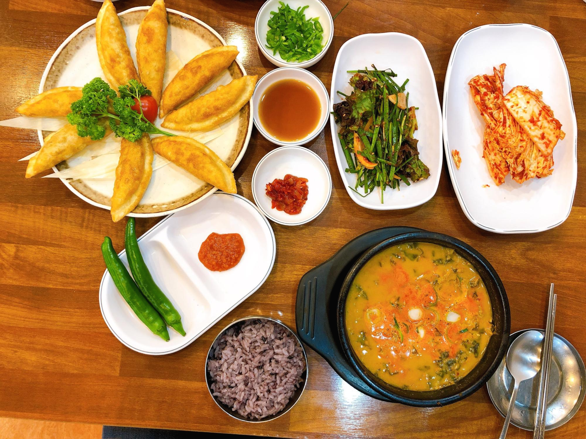 이 날 저희 일행이 주문한 메뉴는 샛집남원추어탕에서 제가 가장 좋아하는 메뉴이기도 한 추어탕(11,000원)과 추어군만두(7,000원)입니다. 기본 제공되는 밑반찬은 깍두기, 배추겉절이, 부추+상추 겉절이, 오징어 젓갈, 추어군만두용 간장, 다진 청양고추, 오이고추입니다. 반찬들도 다 맛있지만 가장 맛있는 건 오이고추입니다. 이 식당의 오이고추는 정말 다른 곳에서 먹는 것보다 한 차원 더 높은 맛을 자랑합니다. 방문하시게 된다면 꼭 드셔보시기 바랍니다.