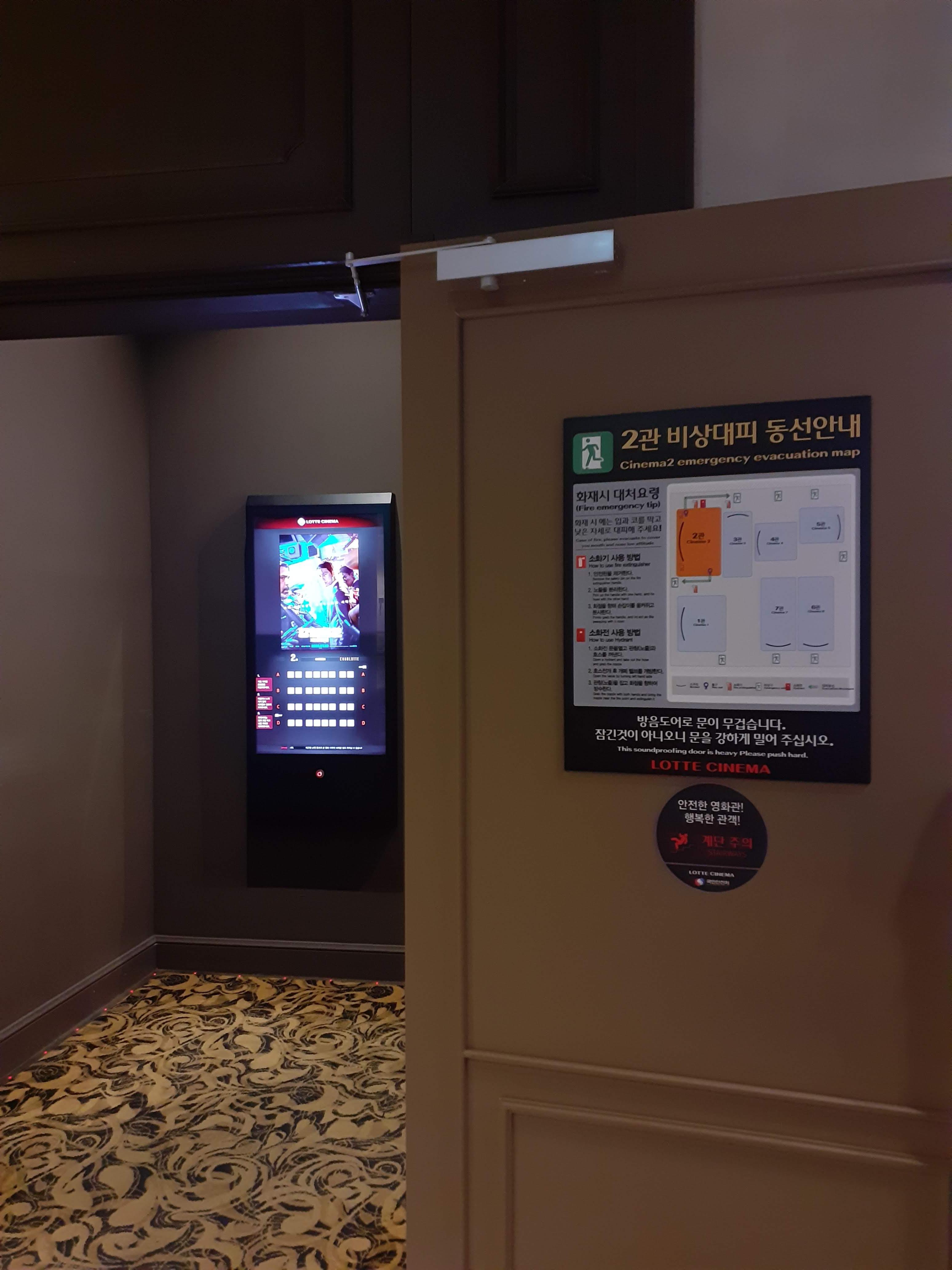 좌측 사진 옆을 자세히 보시면 1이라는 숫자가 보이는데, 바로 샤롯데 프라이빗관 입구입니다. 샤롯데 프라이빗은 8석으로 구성된 대관 전용 프리미엄 상영관이며 프로포즈, 패밀리 파티 등 소중한 행사에 필요한 최적의 공간과 서비스를 제공한다고 합니다. 일반 샤롯데관보다 적은 최대 8명의 관람객을 수용할 수 있습니다.