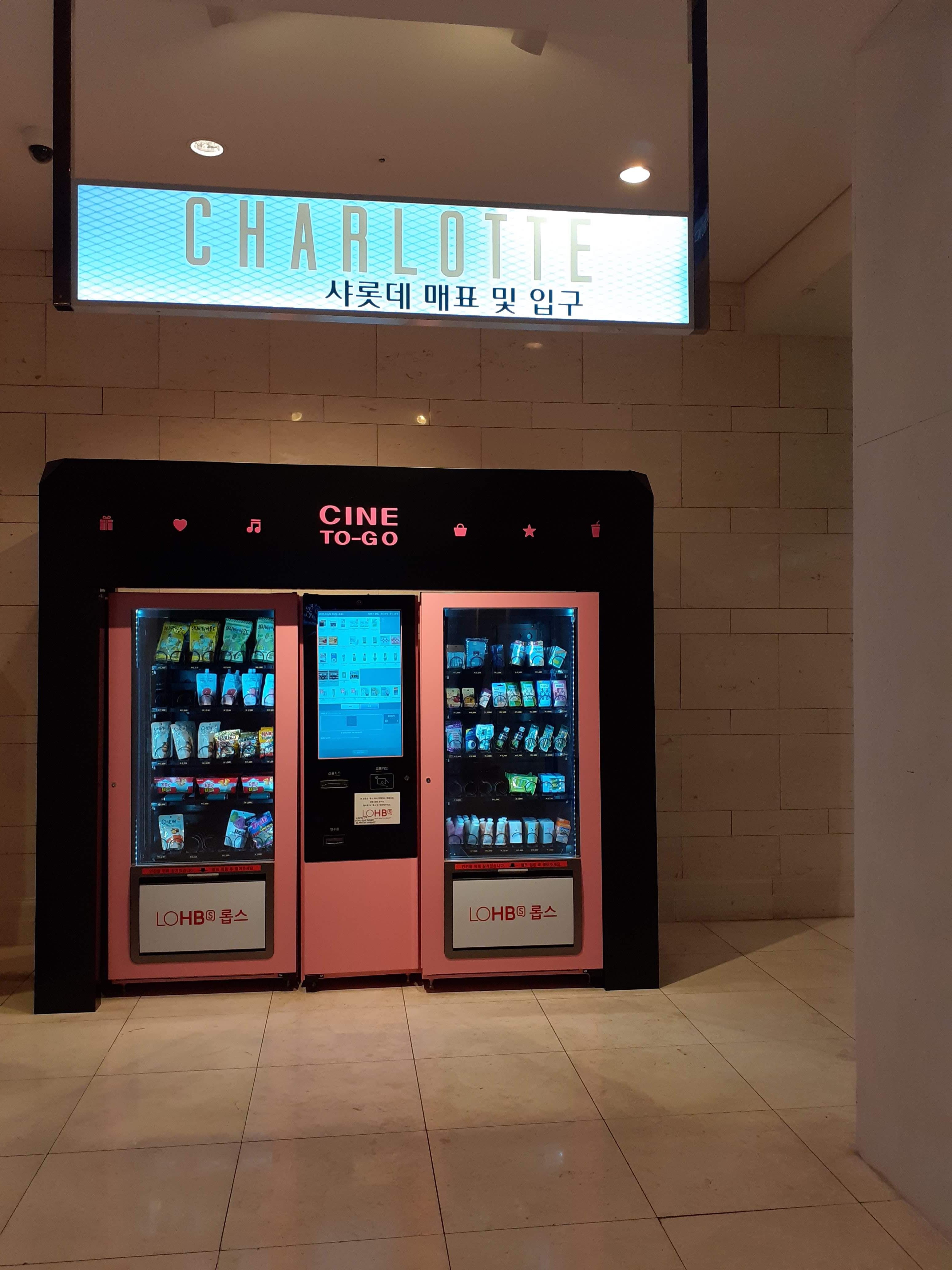 입구 옆에는 음료, 과자를 비롯하여 영화 관람에 필요한 물품들을 판매하는 씨네 투-고 자동판매기가 있습니다. 언택트 시대로 불리는 요즘 시국에 어울리는 장비라고 할 수 있습니다. 하지만 실제로 이용하는 분은 많지 않은 것 같습니다. 아무래도 영화관하면 생각나는 팝콘향 가득한 매점의 분위기가 전혀 느껴지지 않기 때문인 것 같습니다.