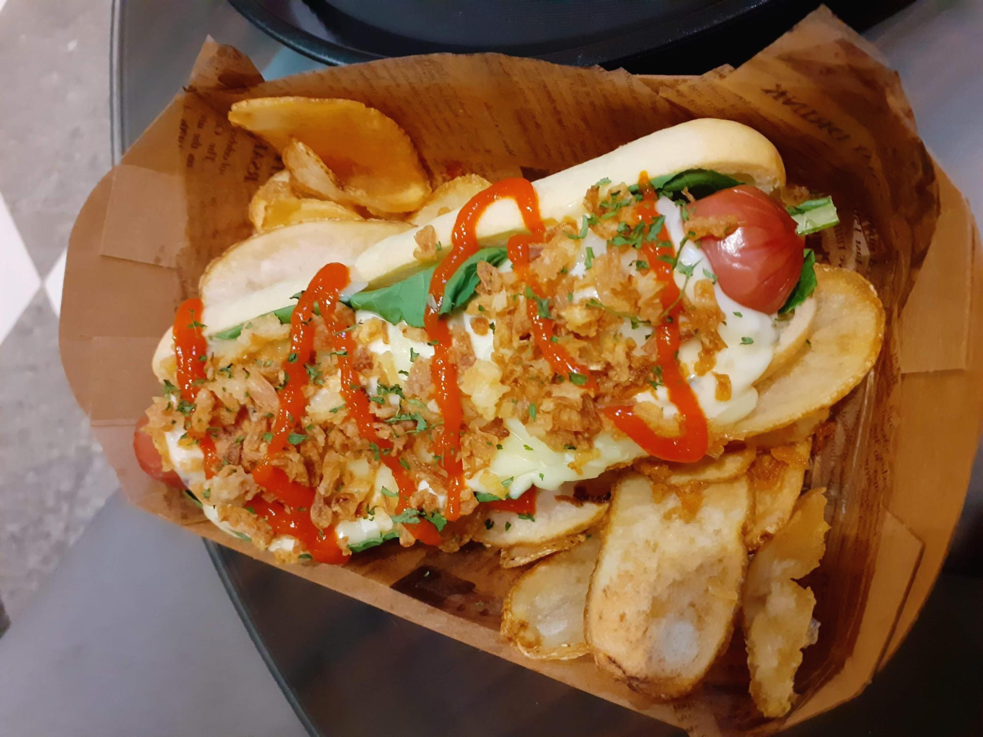 함께 주문한 어니언크리미 핫도그는 오히려 기대한 것보다는 평범한 맛이었습니다. 물론 어니언크리미 핫도그 자체는 통통한 소세지와 부드러운 빵, 그리고 맛있는 소스까지 어우러져 맛있는 편이었지만 김치볶음밥의 맛이 너무 압도적으로 뛰어나게 느껴졌기 때문에 상대적으로 평범하게 보인 건 사실입니다.