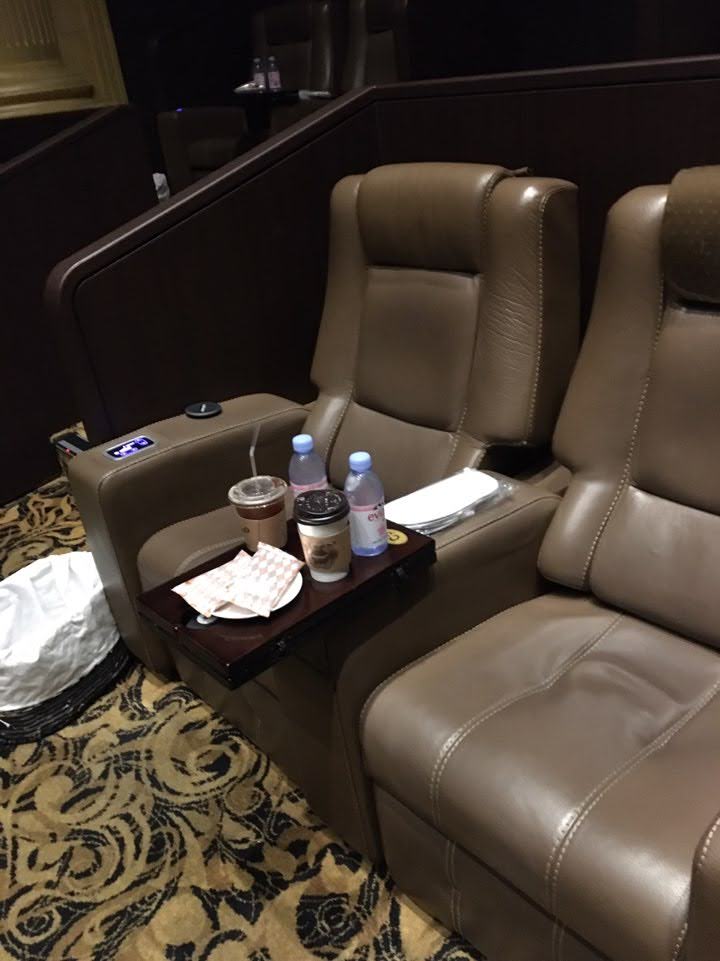 등받이는 최대 45도까지 기울어지며, 다리 받침 또한 편안하게 기댈 수 있도록 올라옵니다. 영화관에서 보기에 다소 생경한 좌석이었지만, 덕분에 마치 집에서 보는 것처럼 편안하게 영화를 볼 수 있었습니다.