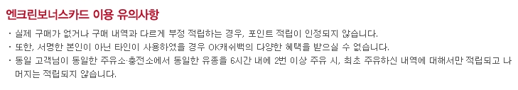 엔크린 보너스카드 이용 시 유의사항은 다음과 같습니다.