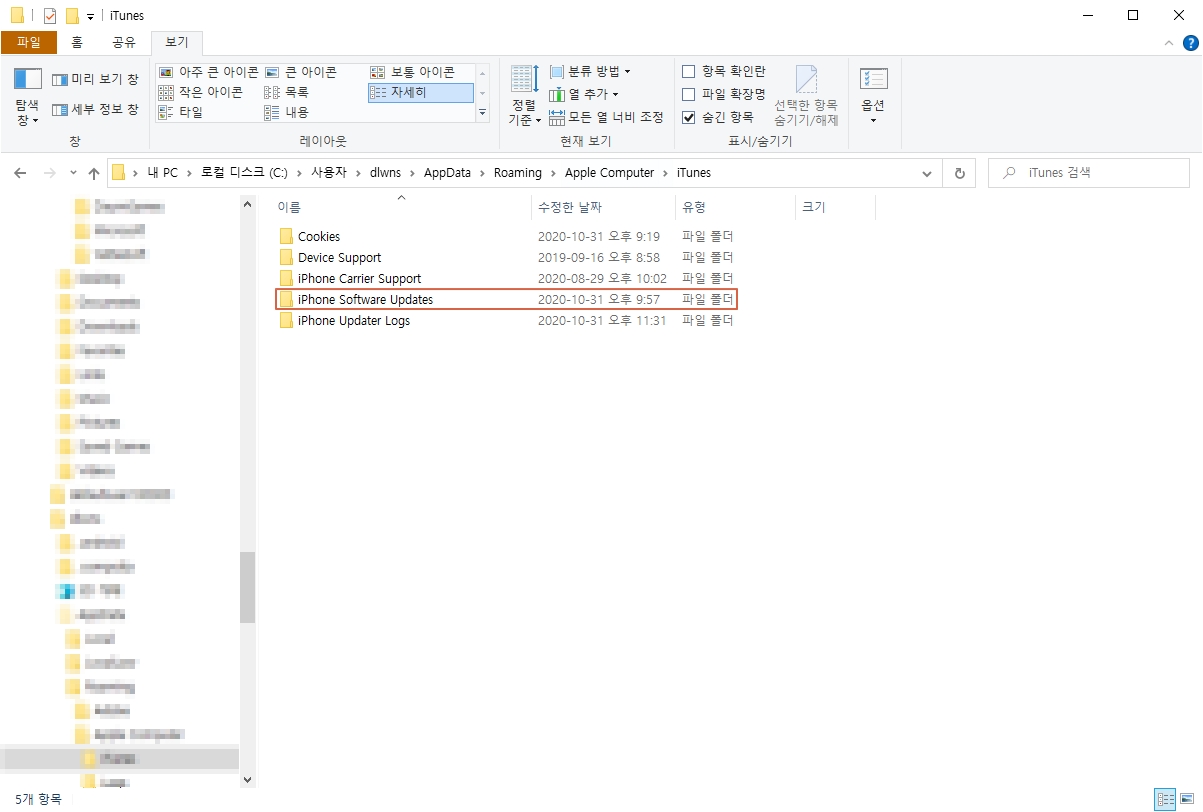 앞서 숨김 폴더를 보이게 한 이유가 바로 여기에 있습니다. 아이폰 업데이트 파일이 숨김 폴더에 있기 때문입니다. 그럼 지금부터 아이폰 업데이트 파일의 위치를 찾아보도록 하겠습니다. (이 포스팅에서는 윈도우10이 설치된 PC를 기준으로 합니다.)