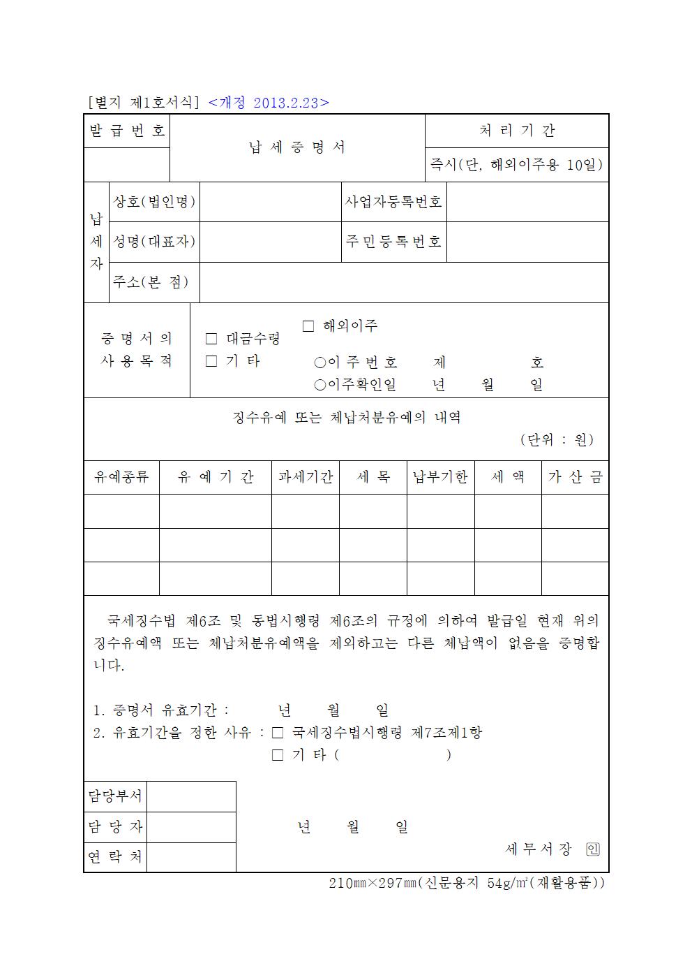 세무서에서 국세 완납증명서 발급 받는 방법 (오프라인)
