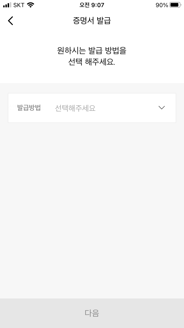 4) 증명서 발급방법 및 발급매수를 선택한 다음, 발급수수료 결제 방법을 선택합니다. 발급수수료는 자신의 계좌에서 자동출금하는 것이 가장 간편합니다.