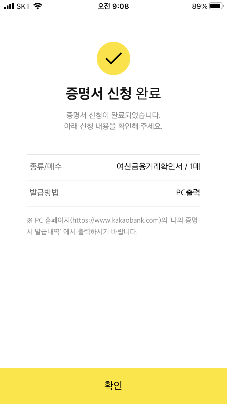[카카오뱅크] 여신금융거래확인서 발급 받는 방법