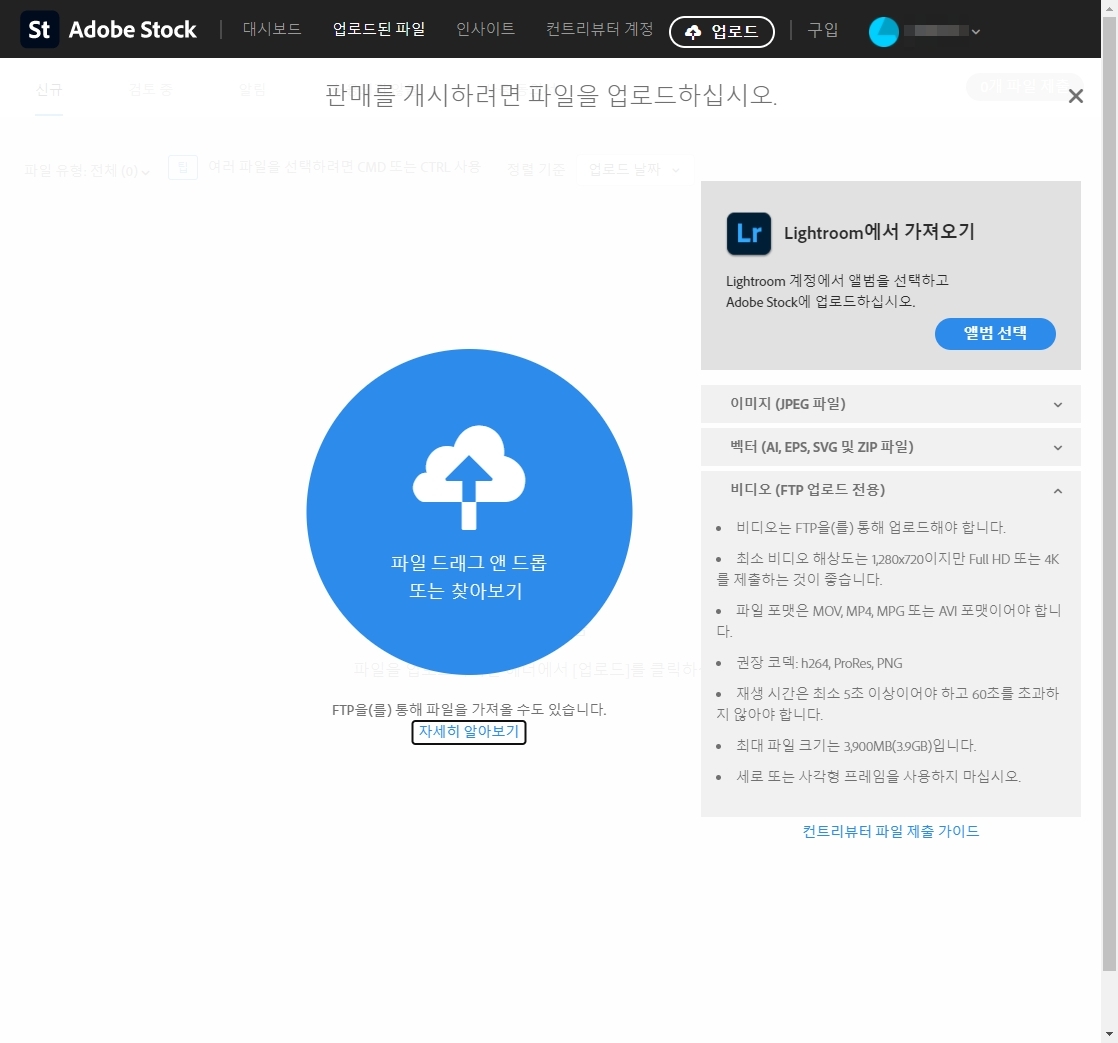 어도비스톡을 하면서 처음으로 동영상 파일을 올려보기로 했습니다. 사진 보다는 동영상이 판매 건당 수익이 좋다는 글을 보았기 때문입니다. 그런데 문제는 동영상 파일 같은 대용량의 파일을 올려본 적이 거의 없어서 어떻게 올리는건지 막막하다는 점이었습니다. 하지만 걱정도 잠시, 어도비스톡에 이 문제에 대한 답이 있었습니다.