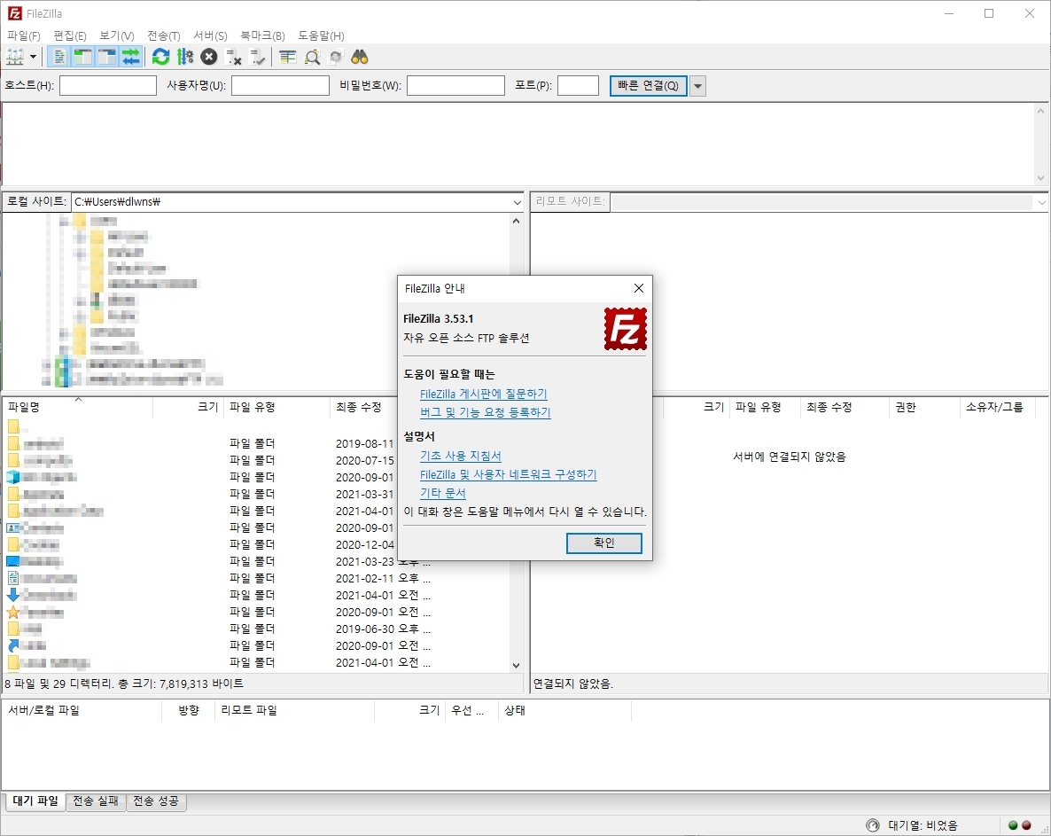 FTP를 사용하여 파일 가져오기라는 제목의 창이 하나 뜨는데 여기에 오늘 우리가 찾는 문제의 답이 적혀 있습니다. 순서는 다음과 같습니다.