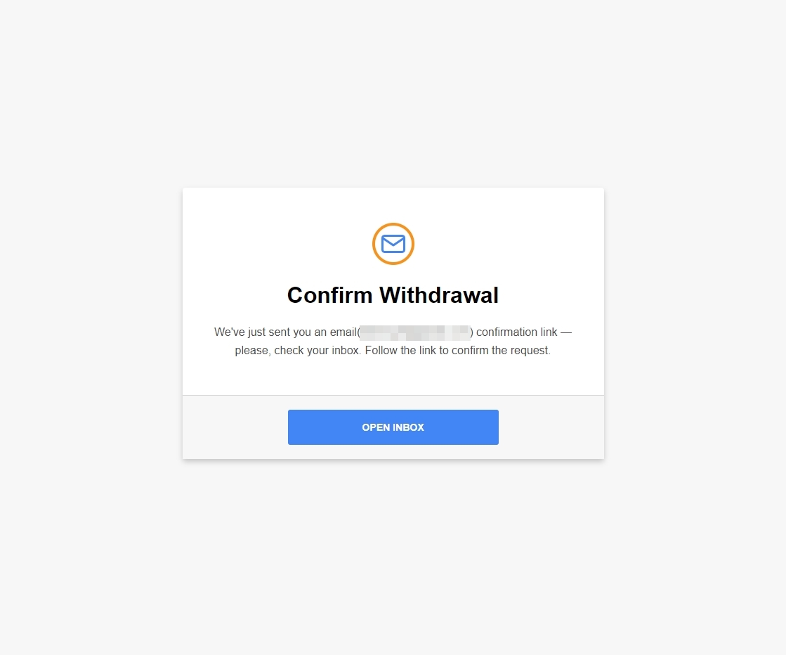 마지막으로 4번 WITHDRAW 항목을 눌러서 출금 신청을 완료합니다. 여기까지 오셨다면, 자신이 크립토탭 가입에 사용한 이메일 계정으로 출금 확인 메일이 가게 됩니다.