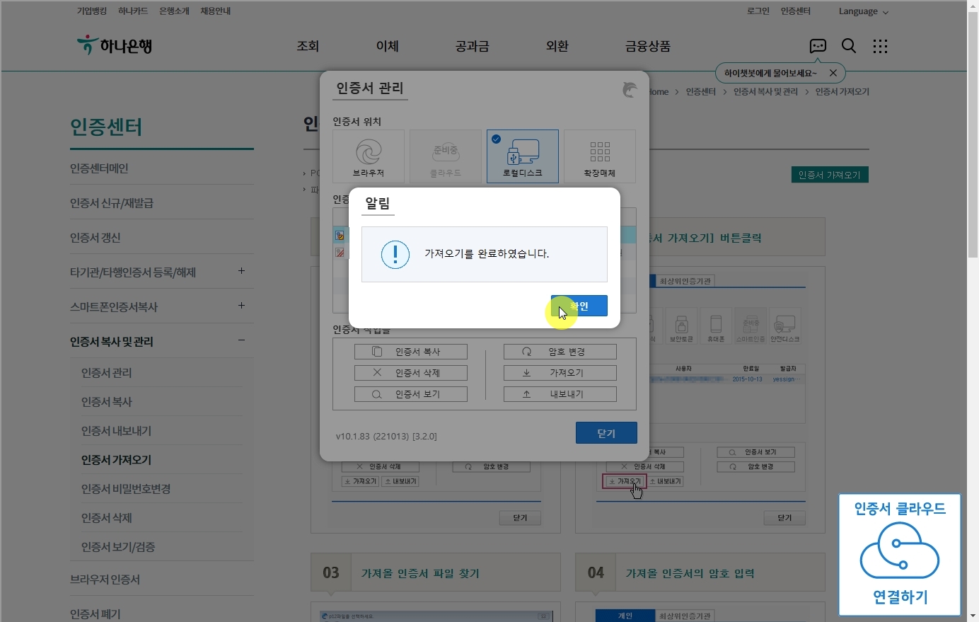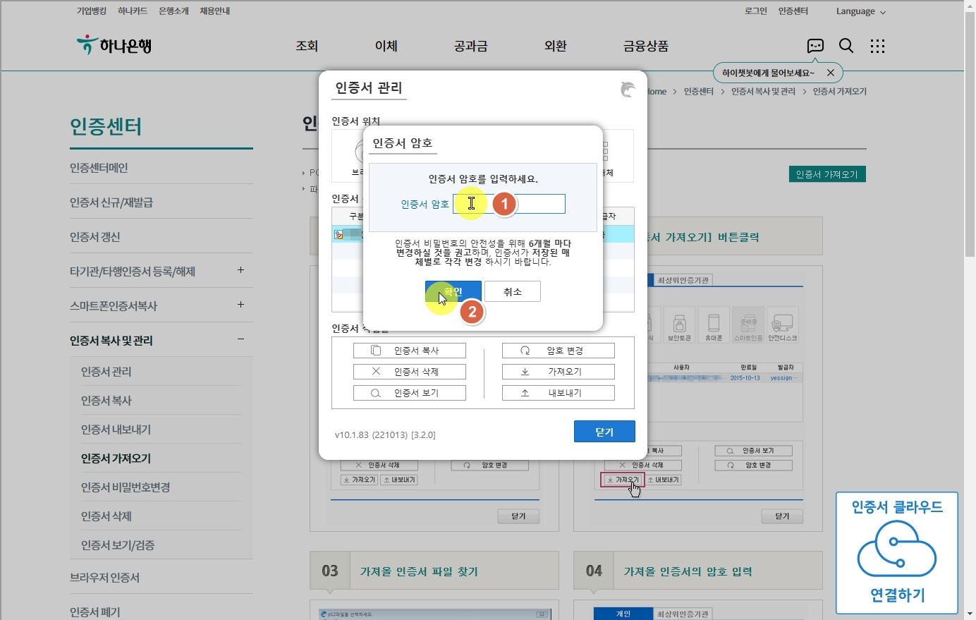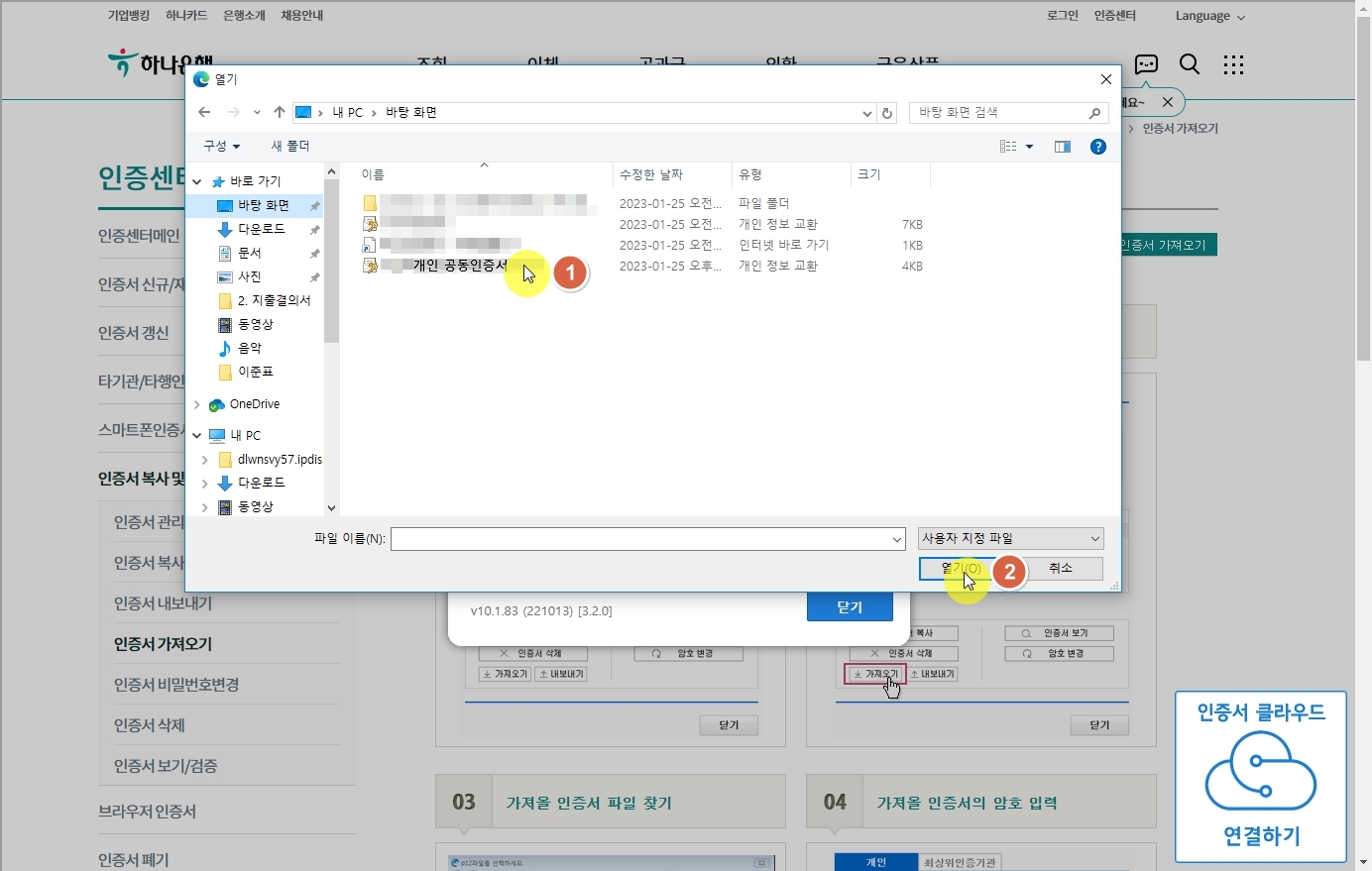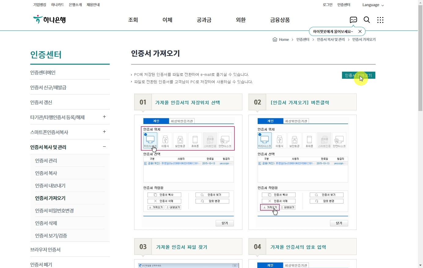 [하나은행] 타행, 타기관 공동인증서 가져오기 (개인)
