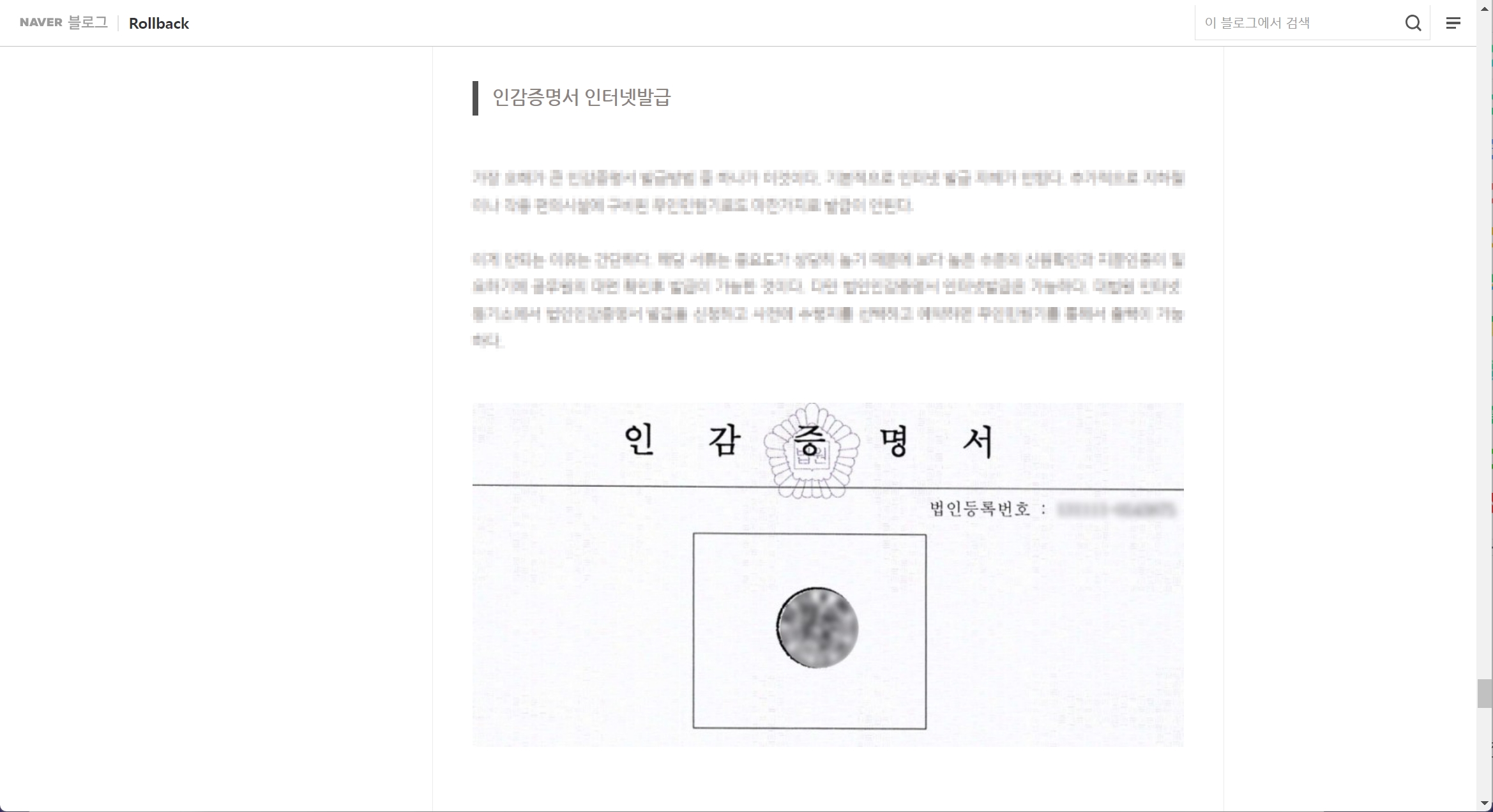 문제가 된 글은 법인인감증명서 통합 무인발급기 발행에 관한 내용이었습니다.
