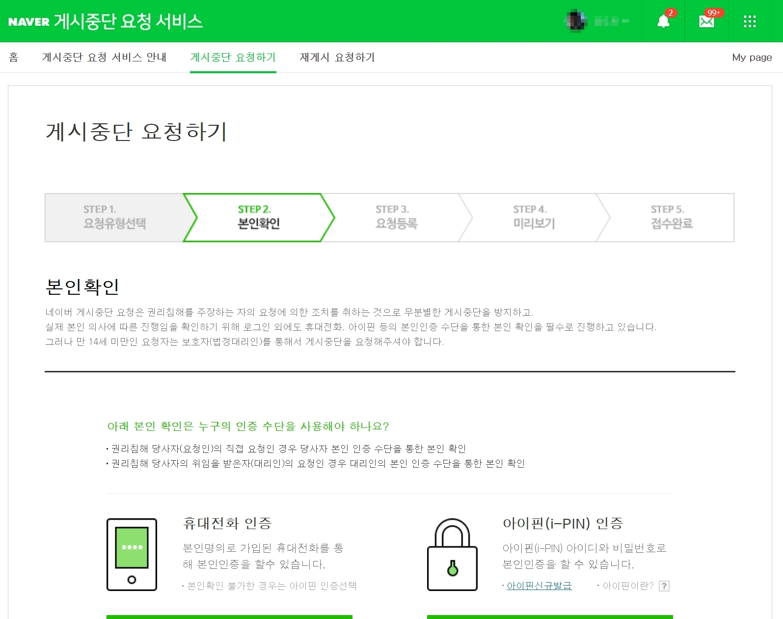 게시중단 신고 결과 확인하기