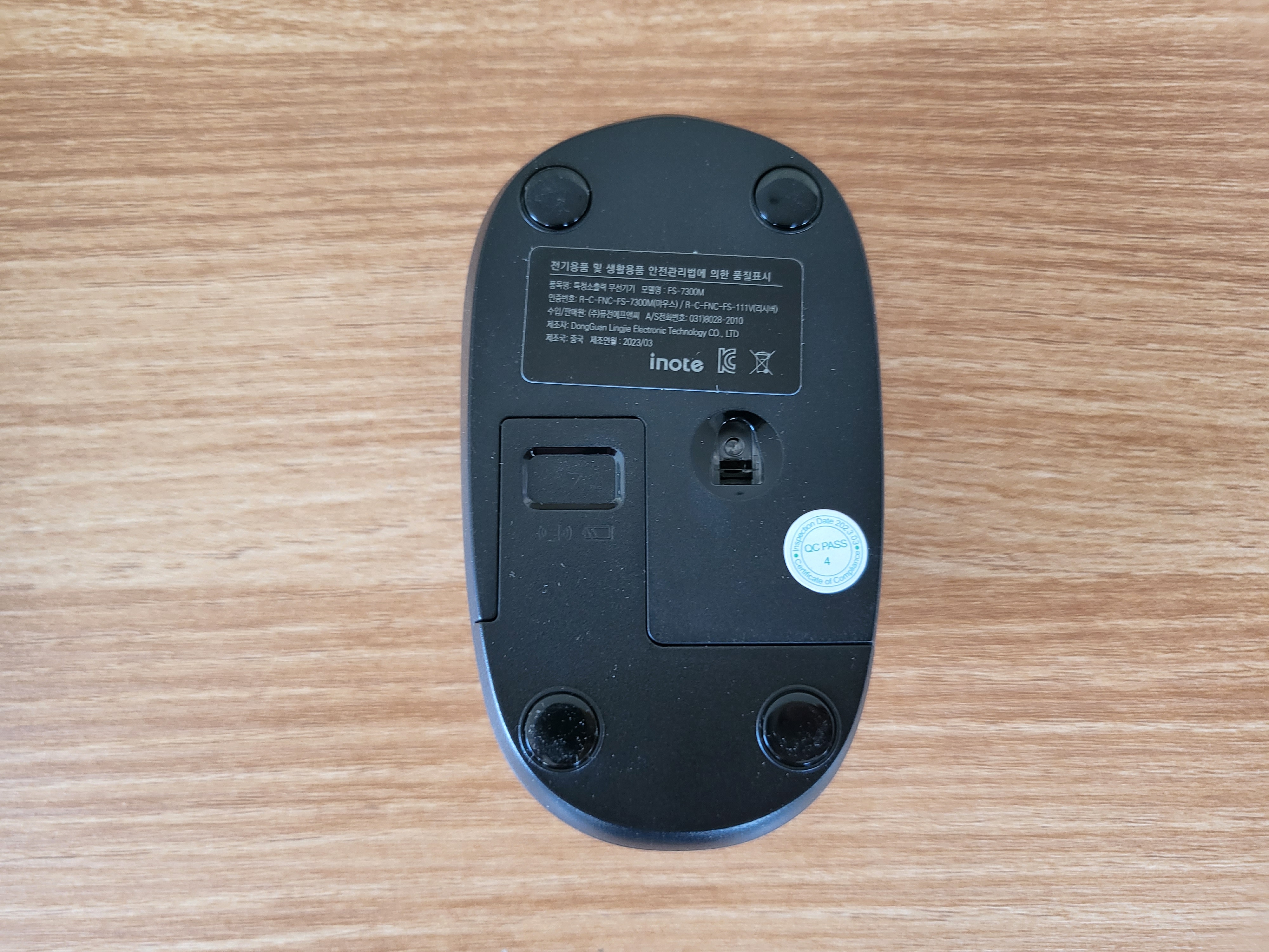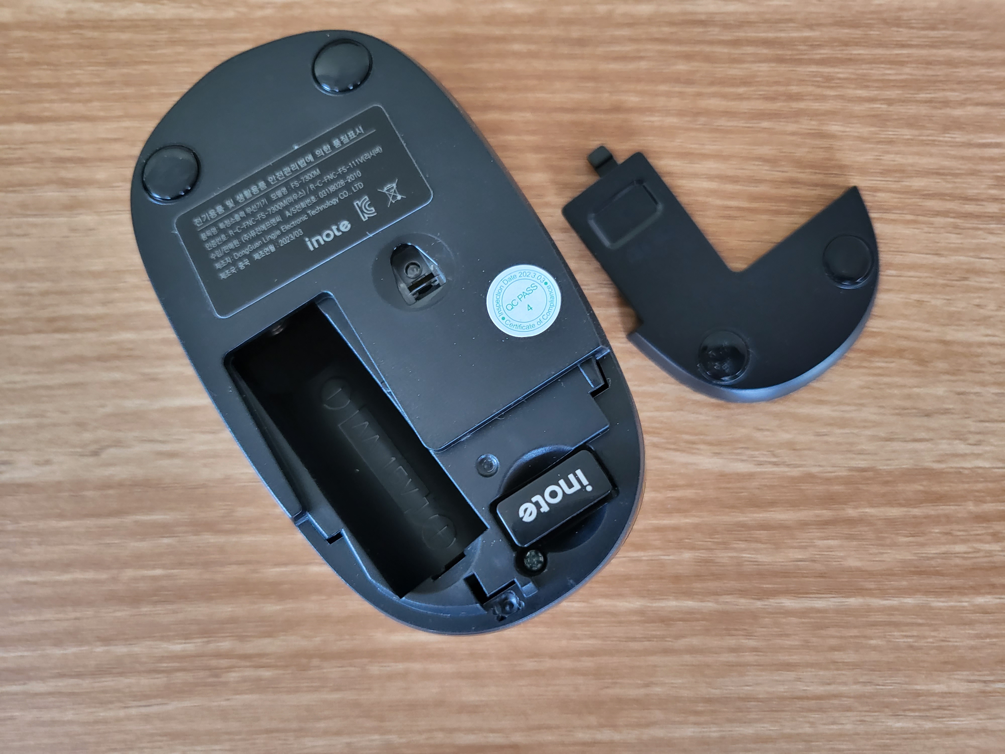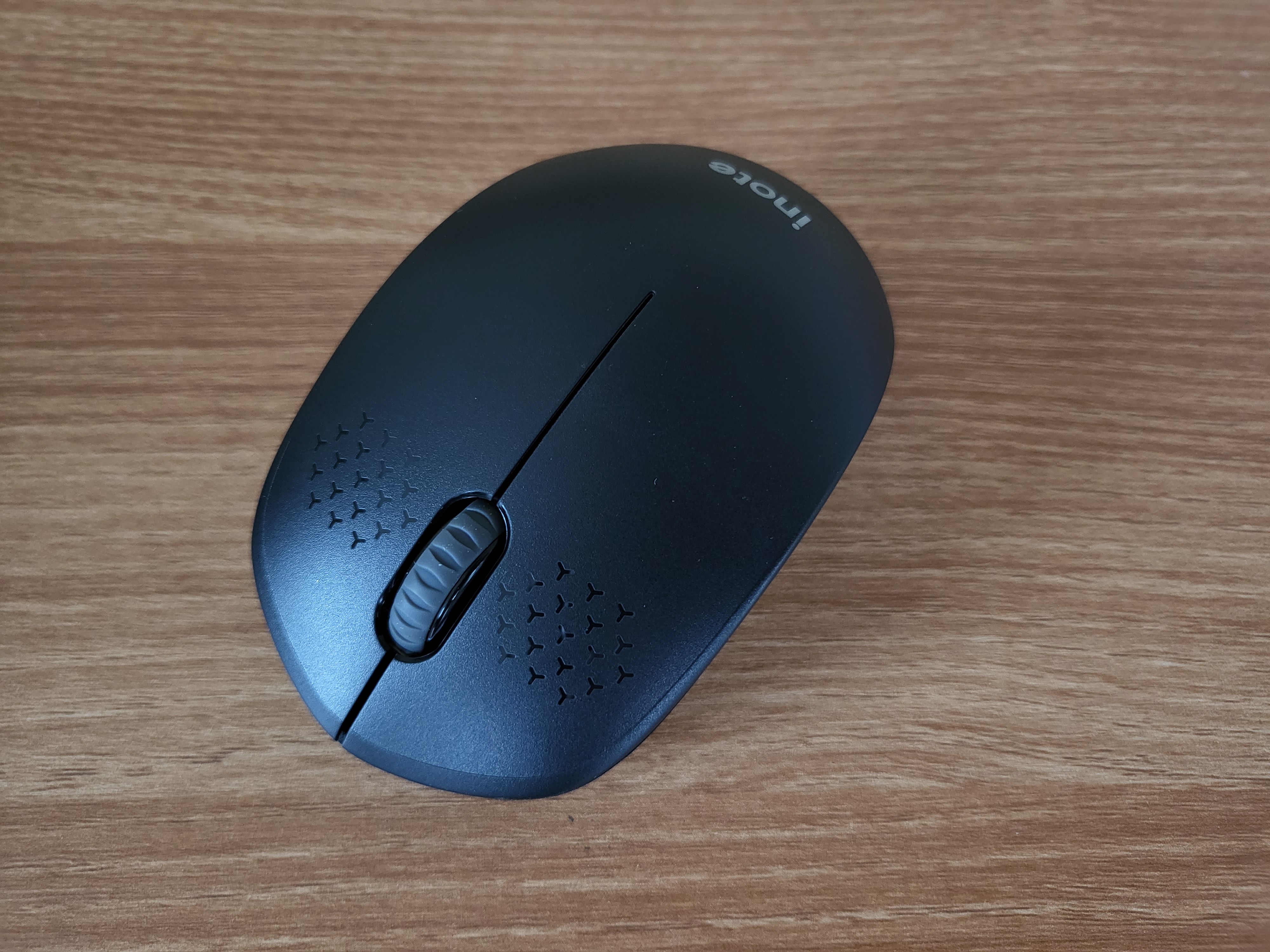 이번에는 마우스를 살펴보겠습니다. 일반적인 마우스보다는 상하길이가 조금 짧아서 손이 작은 분들도 사용하기 편할 것으로 보입니다. 군더더기 없는 깔끔한 디자인에 inote 로고만 있어서 디자인에 대한 불만은 없었습니다. 클릭하는 부분에 작은 돌기가 있어서 미끄러짐을 방지하는 동시에 디자인 포인트로써 역할도 하고 있습니다.