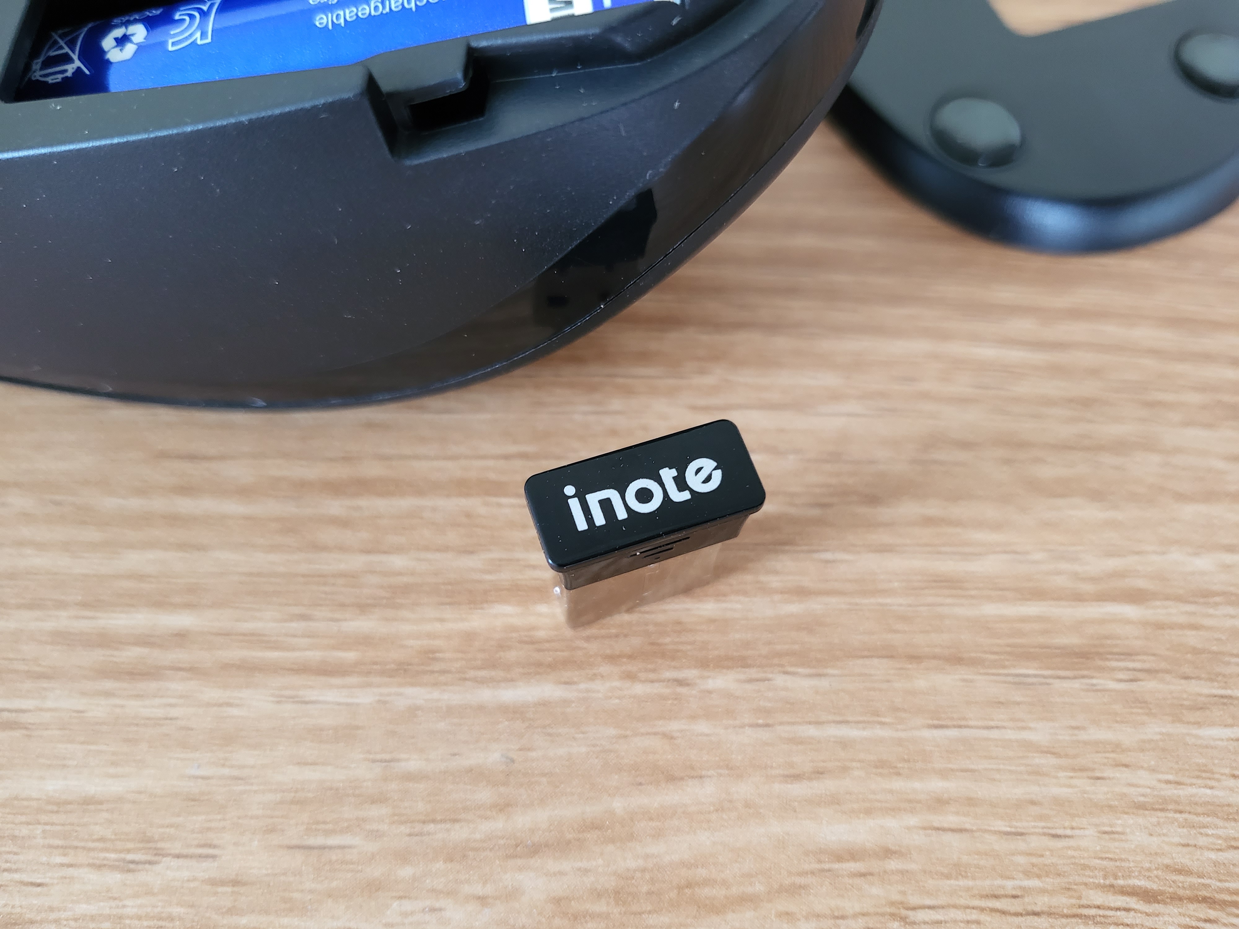 리시버는 일반적인 디자인을 가지고 있습니다. 크기 또한 다른 제품들에서 보았던 것과 비슷합니다. 상단에 inote 로고가 인쇄되어 있습니다.
