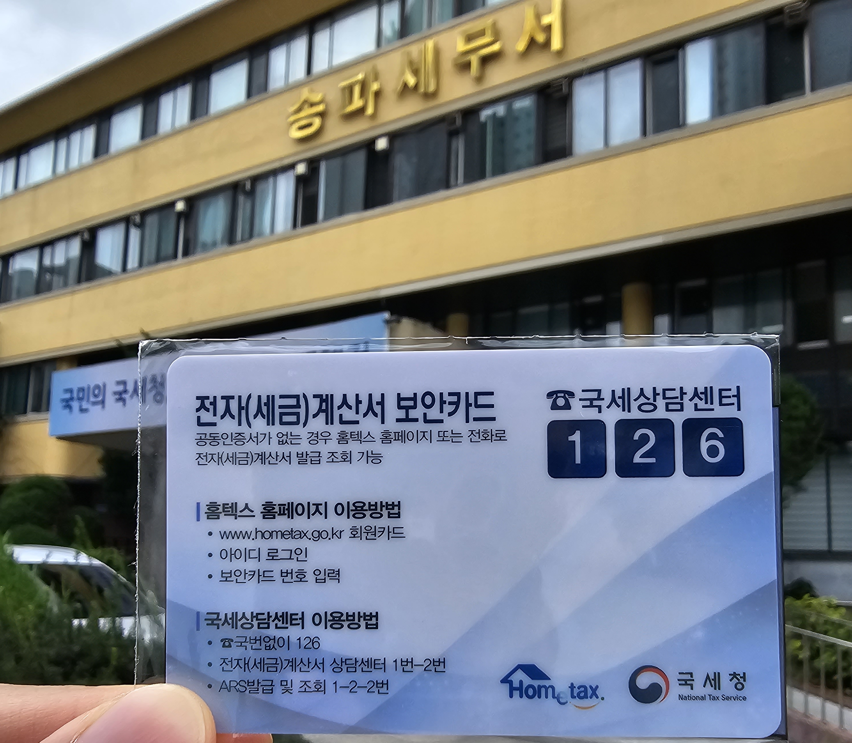 전자(세금)계산서 보안카드는 자신의 사업자 관할 세무서에서 발급이 가능합니다. 저는 제 사업자 관할 지역인 송파세무서를 방문하였습니다.