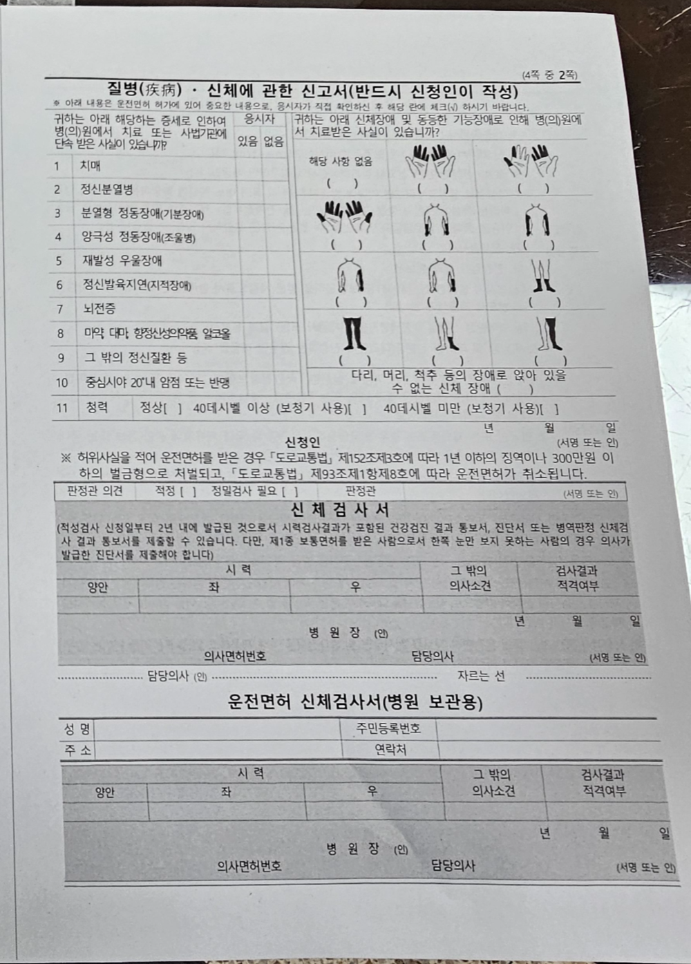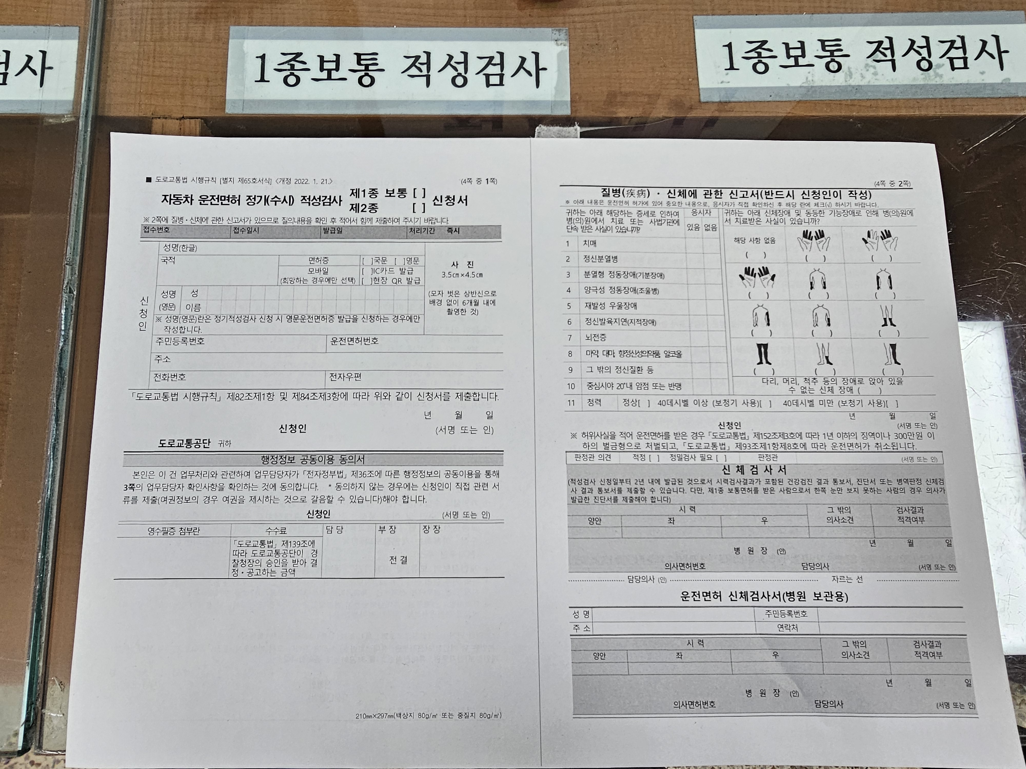 2) 1종보통 신청서 작성 후 지하1층 신체검사 실시