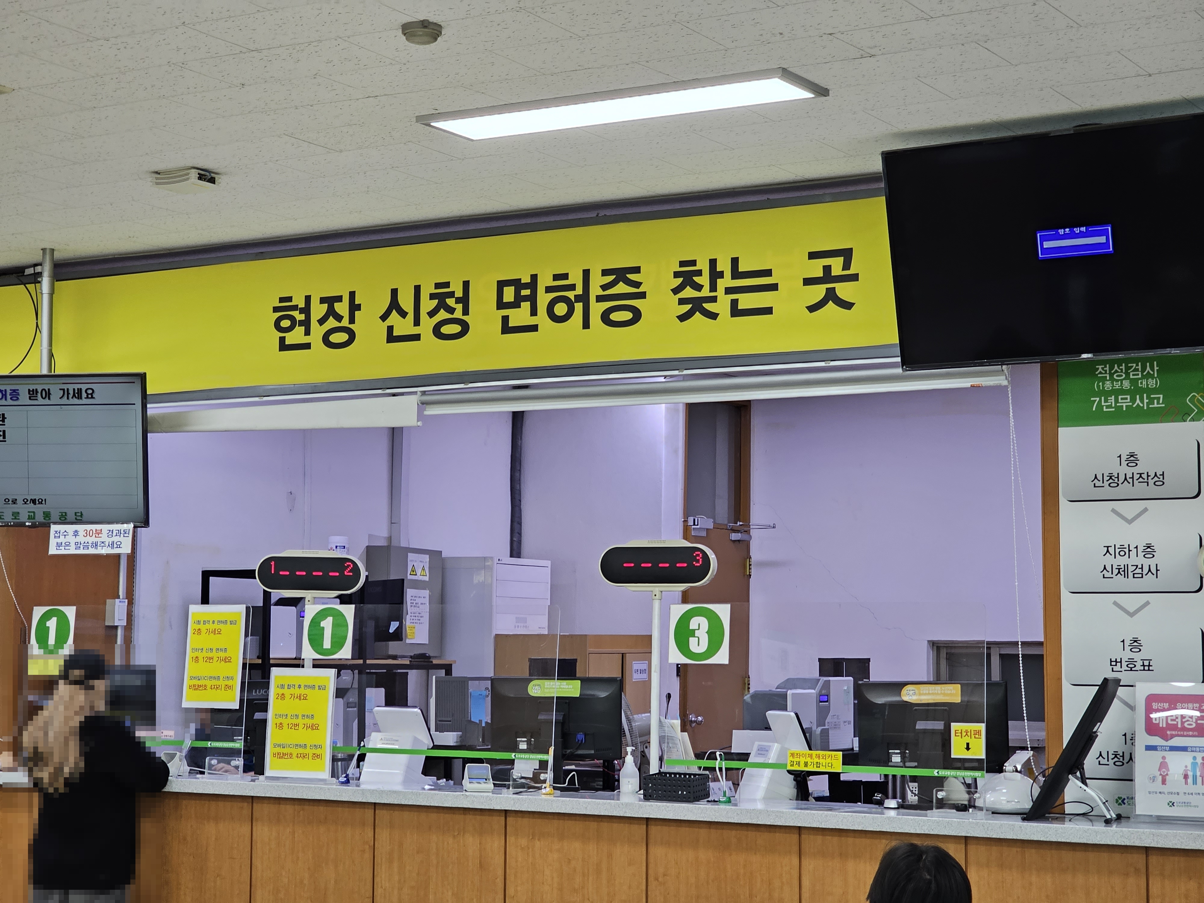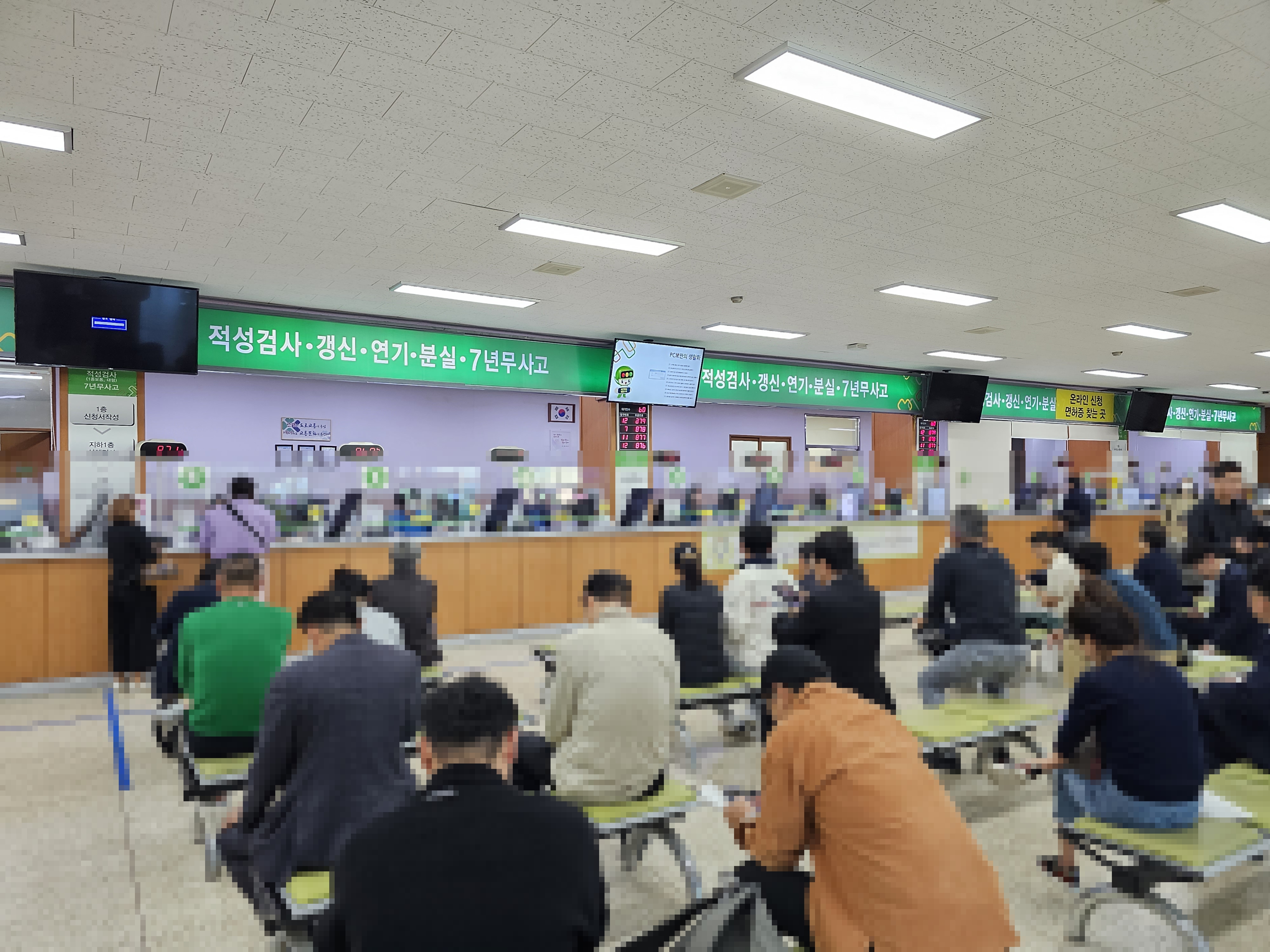 1층 창구에 도착하니 평일 오후에도 정말 많은 분들이 차례를 기다리고 있었습니다. 이곳에서는 운전면허 적성검사 외에 갱신, 연기, 분실, 7년 무사고 등의 다양한 업무를 처리하고 있습니다. 즉, 어지간한 업무는 여기에서 보시면 됩니다.