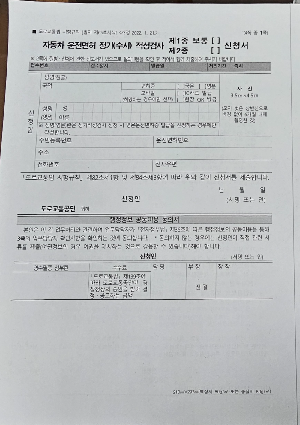 1. 운전면허증갱신교부신청서