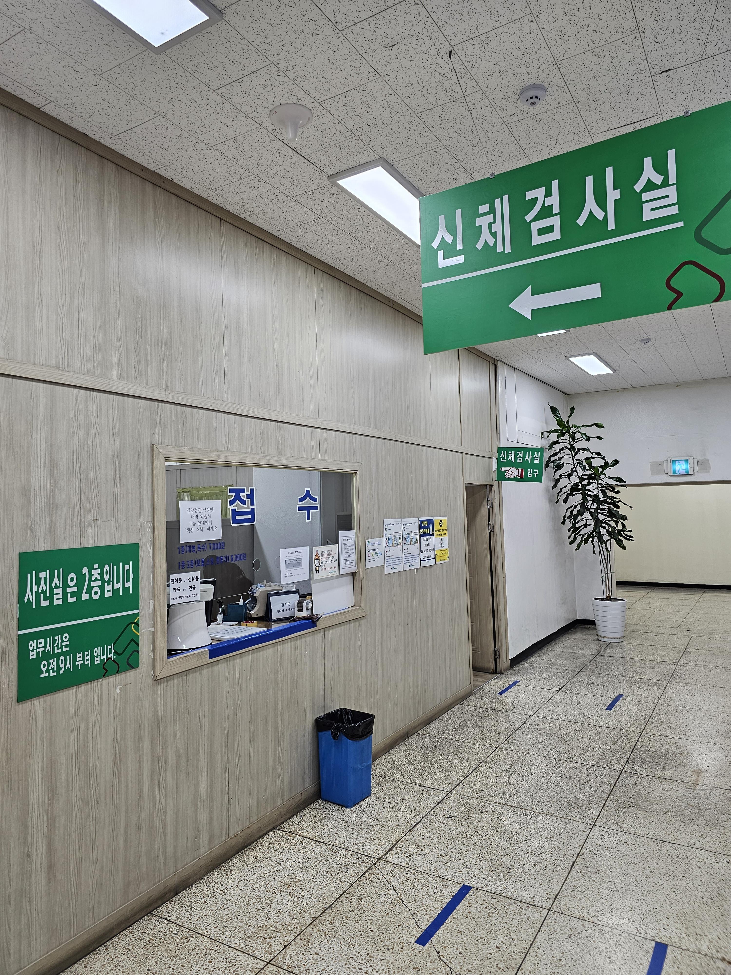 번호표는 1층 중앙에서 발급받으시면 되고 직원분이 번호표 발행기 옆에 상주하시기 때문에 궁금하신 점은 문의하시면 됩니다. (번호표 받으러 가면 어떤 업무로 간건지 먼저 물어보십니다.) 참고로 기다리는 분들이 많기 때문에 번호표를 먼저 뽑고 신체검사를 받으러 다녀오셔야 대기 시간을 줄일 수 있습니다.