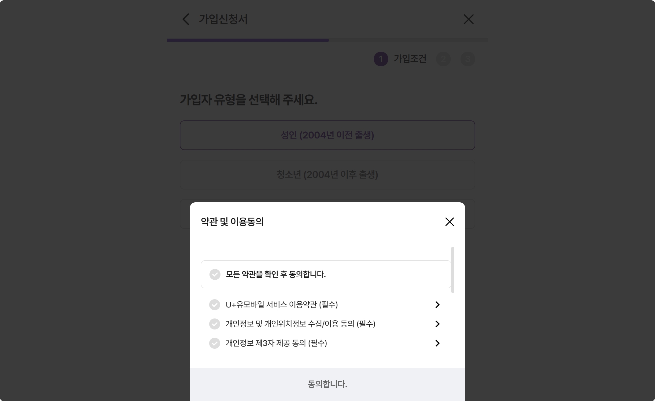 다음은 가입자 유형 선택입니다. 가입자의 나이대, 국적에 맞게 선택하시면 됩니다.