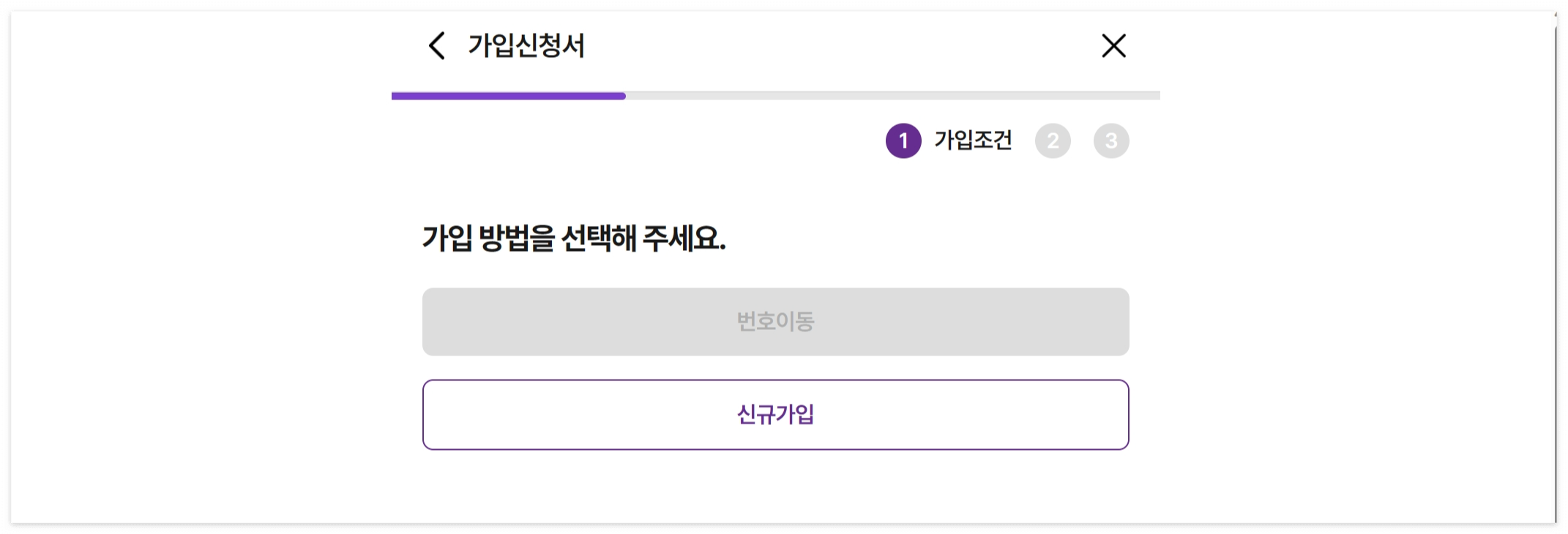 다음은 가입 방법 선택입니다. 번호이동이 아니므로 신규가입을 선택하시면 됩니다.