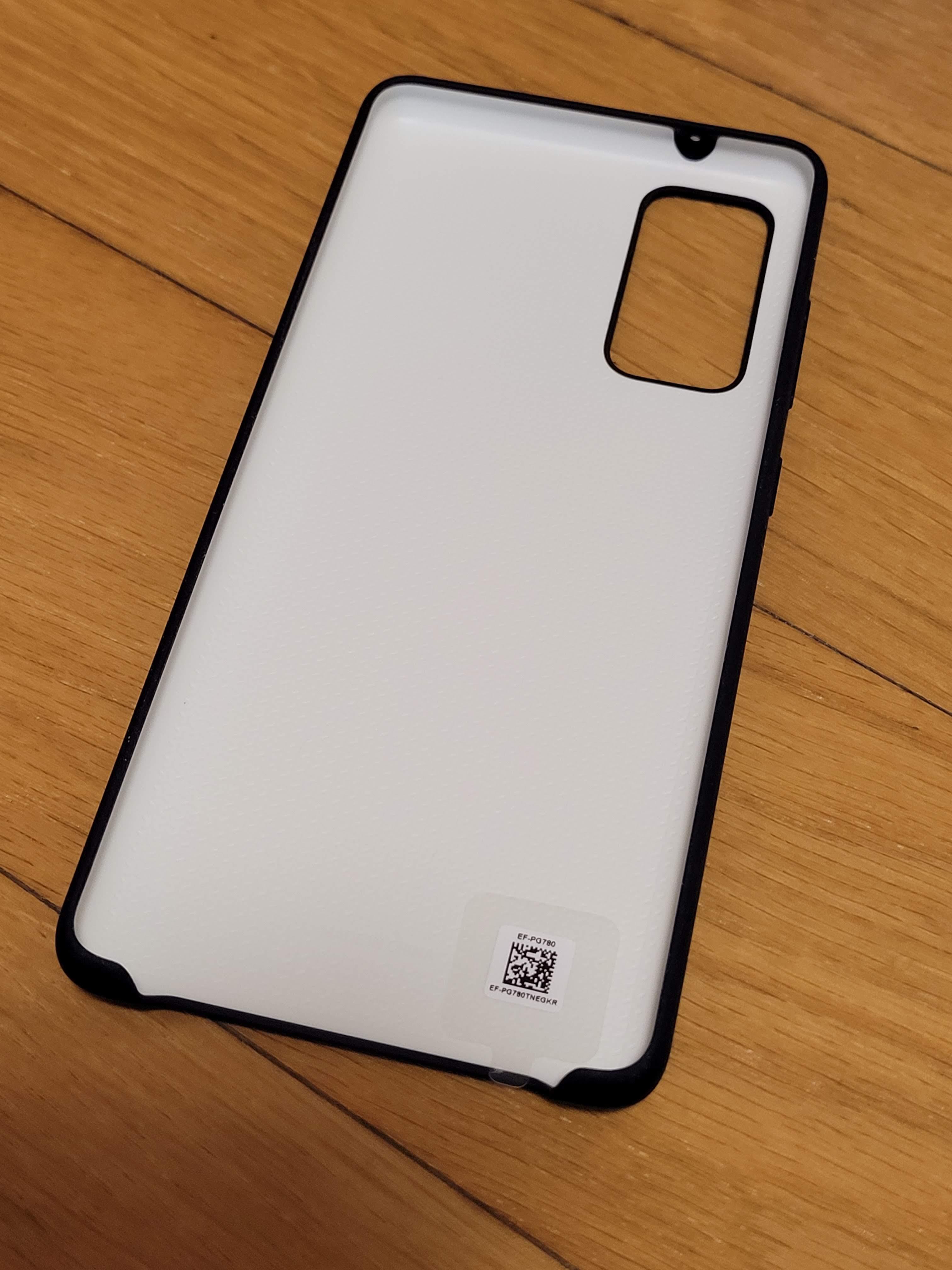 본품을 꺼내보았습니다. 삼성 정품 케이스에서 흔히 볼 수 있는 형태의 패키지에 잘 포장되어 있습니다. 자세히 보니 Galaxy S20 FE / Galaxy S20 FE 5G 두 가지 제품명이 같이 표기되어 있는데, 이는 전 세계에 판매하는 패키지를 통일하여 약간이라도 원가를 절감하기 위한 조치로 보입니다.